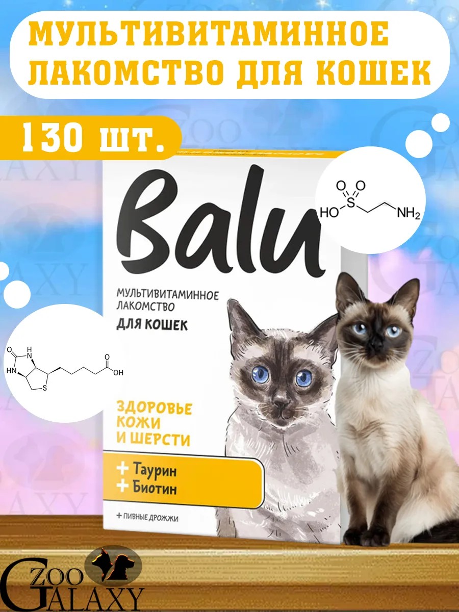 Balu Мультивитамины для кошек здоровье кожи и шерсти 130 таб