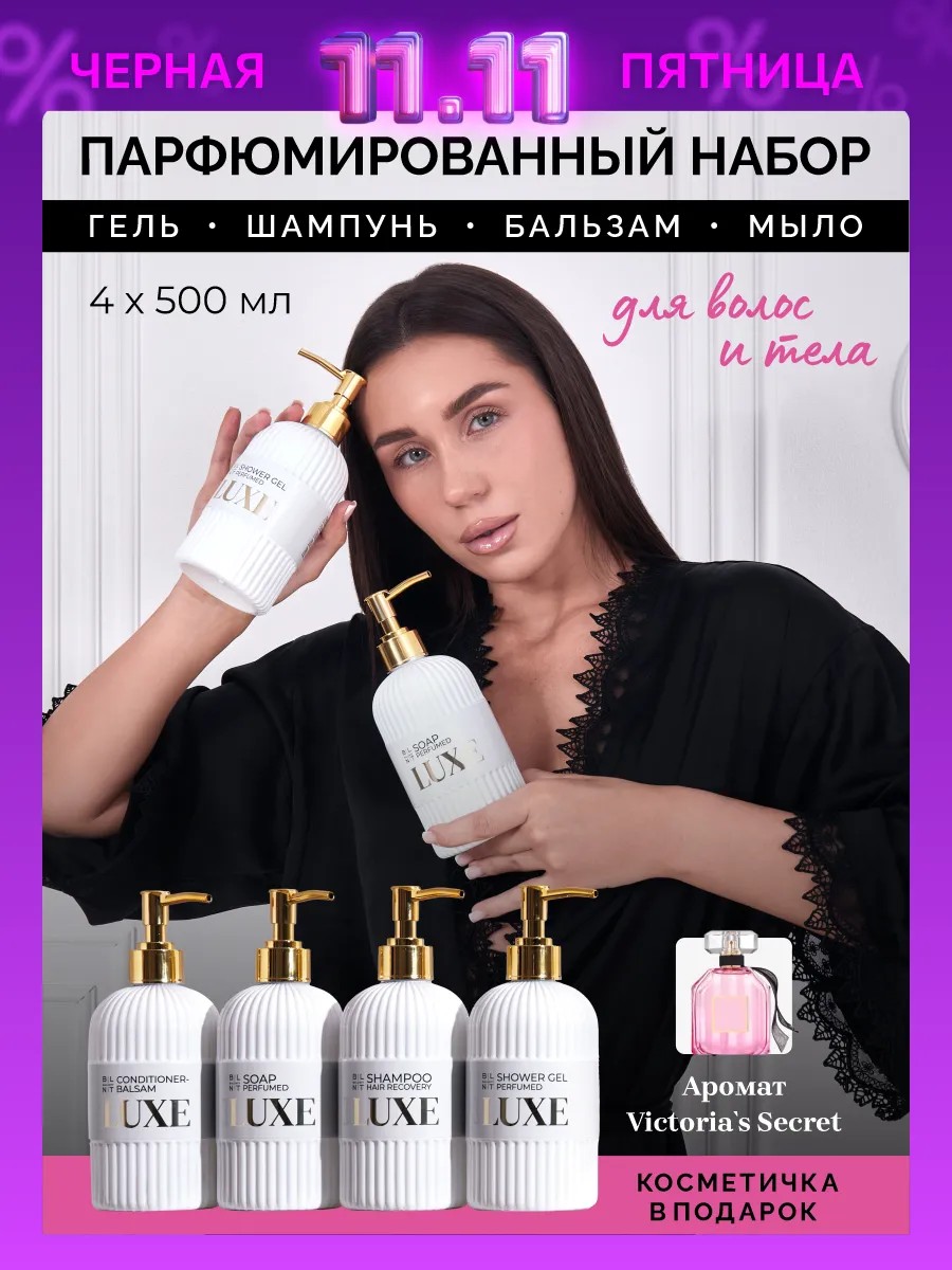 Шампунь для глубокого увлажнения и восстановления поврежденных волос. Pinterest набор косметики для женщин LUXE - шампунь для волос, бальзам кондиционер, гель для душа, парфюмированное мыло.Уход за волосами и телом женский. Погрузитесь в мир бережного ухода и утонченных ароматов с женским набором для душа LUXE. Профессиональный шампунь для волос женский глубокой очистки питает, увлажняет и восстанавливает локоны. Бережно очищает, не сушит, возвращает силу и густоту.Против появления перхоти, ломкости. Восстановливает структуру, ломких, пористых, мелированных осветленных, обесцвеченных и окрашенных. Подходит для людей с чувствительной, нормальной кожей головы, и всех типов волос: тонких, пористых вьющихся, жестких, очень жирных, седых, поврежденных, крашенных блондинок, брюнеток, рыжих. Гель для душа женский тонизирующий очищает кожу и избавляет от шелушений. Улучшает упругость и эластичность, успокаивает и устраняет раздражение. Для интимной гигиены. Парфюмированный кондиционер бальзам увлажняет и питает кончики, делая мягкими, шелковистыми и послушными, придает гладкость и эластичность. Предотвращает сухость, пушистость, статическое электричество. Увлажняет, уплотняет и придает объем без утяжеления, блеск локонам. Обеспечивает разглаживание и защиту от спутывания, для легкого расчесывания мокрых и сухих локонов. Решает проблему секущихся кончиков, заживляет поврежденные участки. Проф сос средства с дозатором большой обьем. Жидкое мыло для рук нежно мягко очищает, ухаживает за кожей. Мыло туалетное дарит приятный утонченный аромат. Ароматизированная пена предотвращает пересушивание и питает. Пинтерест косметический бокс оригинальный подарок сюрприз для мамы, подруги, девушки, сестры, жены, учителя, тренера, руководителя, коллеги, директора, на день рождения, выпускной или другой праздник. Натуральные средства для ежедневного ухода за телом и волосами. Премиум уход для здоровья, роскоши и красоты. Отличная замена корейских брендов для ванны и косметики из Кореи.