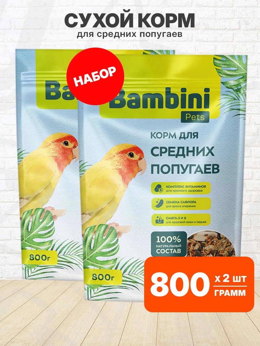 Bambini Pets Корм сухой для средних попугаев 800 г 2 шт