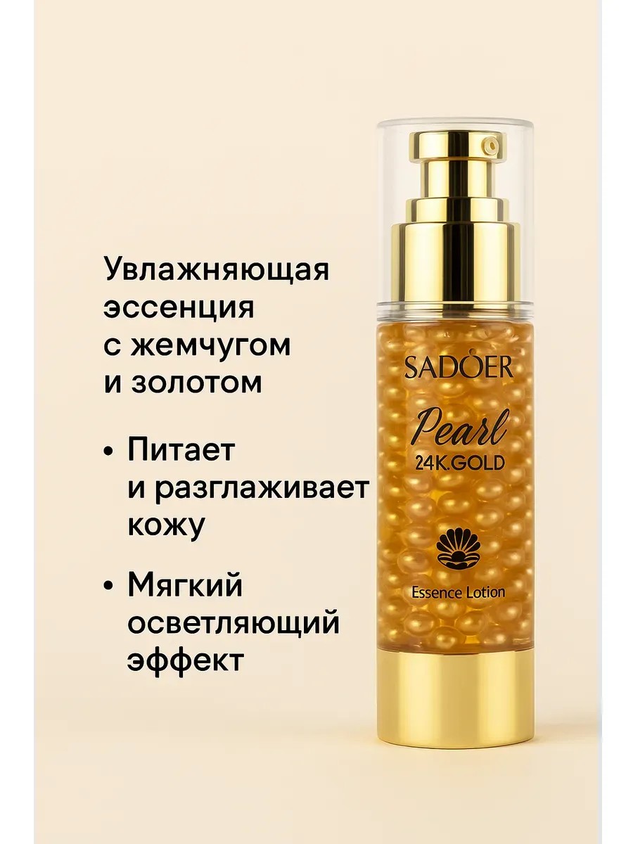 Идеальный выбор для тех, кто ищет увлажняющую эссенцию-лосьон с коллагеном, антивозрастной уход с золотом, средство для сияния и омоложения кожи. Подходит в качестве подарка, легко взять с собой в дорогу. Сделайте шаг к безупречной коже вместе с SADOER 24K Gold Pearl Essence Lotion!