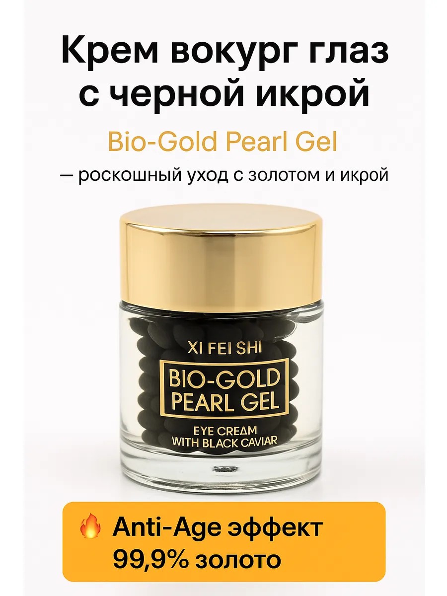 Крем для кожи вокруг глаз с черной икрой и золотом XI FEI SHI Bio-Gold Pearl Gel — это инновационный уход за нежной и чувствительной зоной век. Средство создано на основе экстракта черной икры, гиалуроновой кислоты, пептидов и 99,9% чистого золота, которые в комплексе обеспечивают мощный anti-age эффект, заметно уменьшают морщины и признаки усталости.