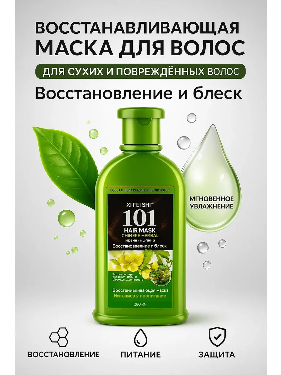 Восстанавливающая маска для волос XI FEI SHI 101 Chinese Herbal — это эффективное средство для ухода за сухими и повреждёнными волосами. Уникальная формула на основе травяных экстрактов глубоко питает и увлажняет волосы, придавая им силу, мягкость и здоровый блеск.