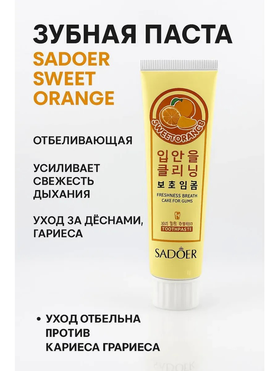 | Полное наименование товара | SADOER зубная паста апельсиновая, отбеливающая, освежающая, для дёсен и белизны зубов, 100 г |