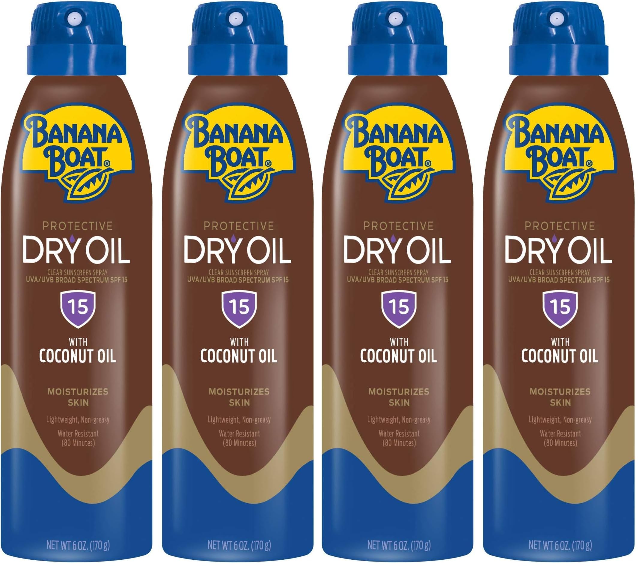 Banana Boat Protective Tanning Dry Oil Clear Spray Sunscreen SPF 15 6oz | Tanning Sunscreen Spray Banana Boat Dry Oil SPF 15 SPF Tanning Oil Dry Tanning Oil Spray 6oz each Twin Pack (Pack of 2)