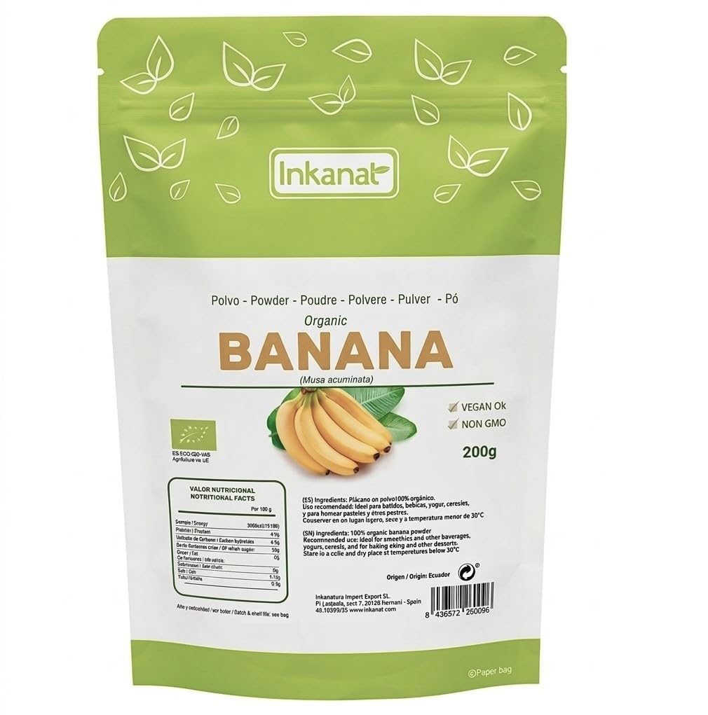 Banane en Poudre Bio 200g – Naturelle, Sans Sucre Ajouté, Idéale pour Smoothies, Shakes et Pâtisserie – INKANAT