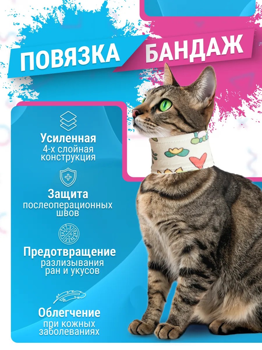 Повязка воротник на шею для кошек мягкая