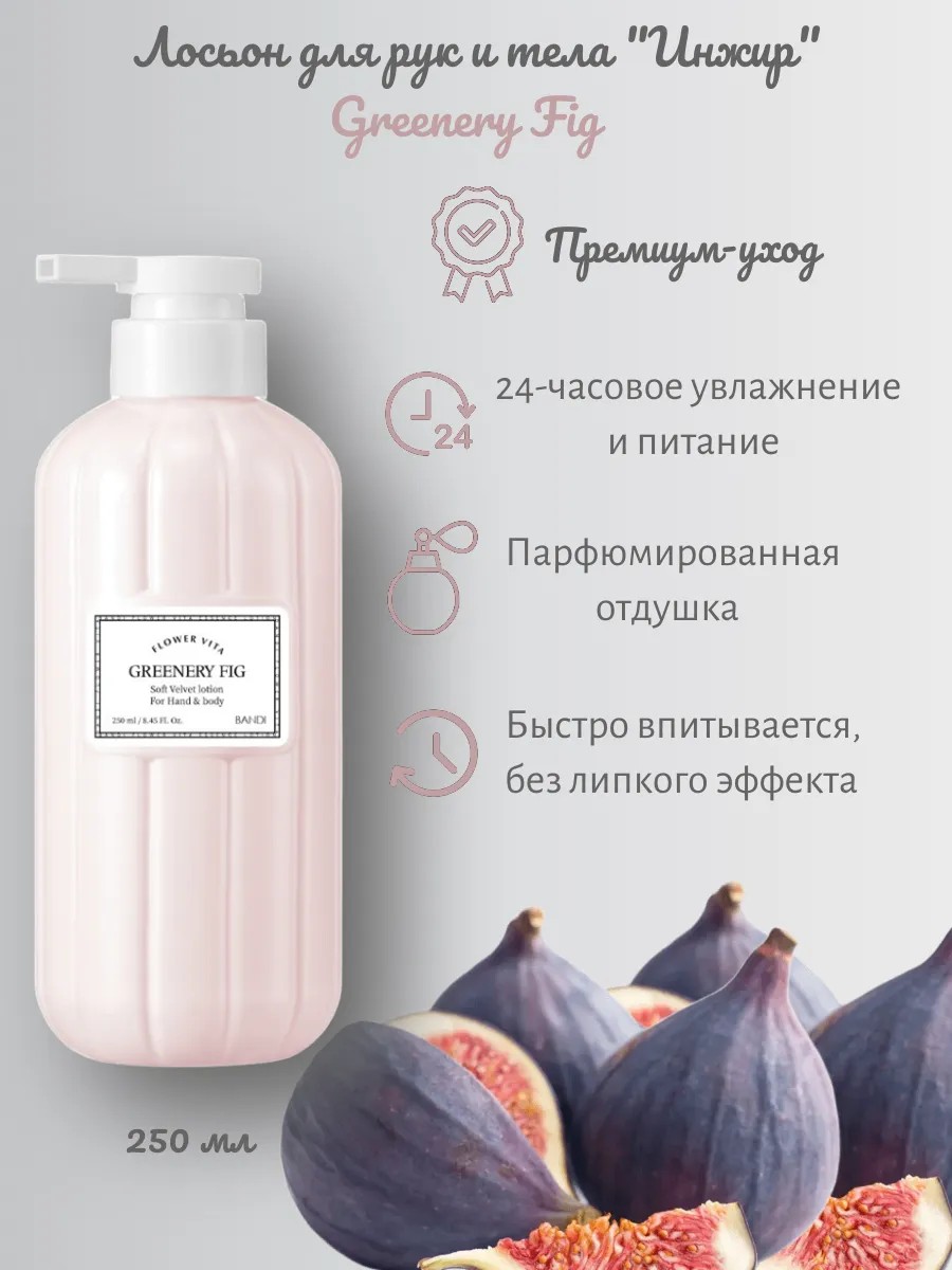 Лосьон «Инжир» от Банди не только глубоко увлажняет и питает кожу, но и придает нежный фруктово- цветочный аромат. С первого взгляда композиция завораживает свежим ароматом инжира. В «сердце» - мягкий аромат черной смородины и гиацинта. Композиция оставляет стойкий и приятный шлейф мускуса и древесины.
