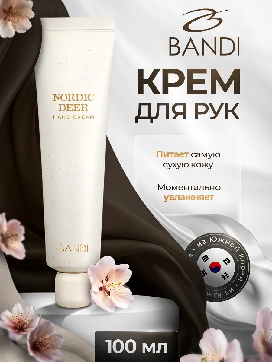 Крем Nordic Deer "Норвежский олень" от профессиональной корейской марки BANDI идеален для ухода за сухой и чувствительной кожей рук, в любое время года. В его составе находятся мощные компоненты, центелла азиатская обладает восстанавливающим действием, а масла ши и жожоба имеют увлажняющий и питательный эффект. Полиглютаминовая кислота глубоко проникает в дерму, обеспечивая длительное увлажнение. Кроме того, экстракт гингко билоба успокаивает раздражения и покраснения, что делает его особенно эффективным для кожи. Крем для рук увлажняющий и питающий для сухой кожи не оставляет липкой пленки и моментально впитывается, даря ощущение комфорта и легкости. Свежий сладкий аромат крема с мочевиной остается надолго, принося приятные моменты. Количество применений в течение суток не ограничено, поэтому вы можете использовать его так часто, как это необходимо.Наша уходовая косметика не тестируется на животных и разработана с любовью к природе. Позвольте себе насладиться непревзойденным качеством и подарите себе настоящую роскошь.