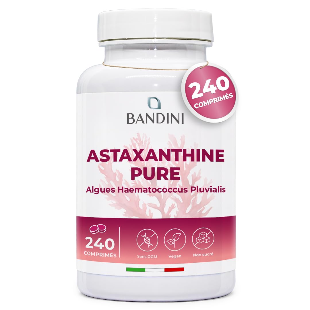 CERTIFIED PRODUCTS. Bandini Pharma is an Italian company that offers innovative, high-quality health and wellness products in a dynamic and professional manner. Our products are manufactured in our GMP-certified laboratory, UNI EN ISO 9001:2015 and ISO 22000:2018. The Bandini Pharma line, entirely made in Italy, includes a wide range of products with excellent value for money. TESTED QUALITY. Our pure vegan astaxanthin formula is naturally derived from the Haematococcus pluvialis algae and is created through a meticulous selection of raw materials. Our dietary supplements are high-quality, vegan, GMO-free, and produced without unwanted additives, colorings, or preservatives. All our supplements contain no ingredients of animal origin. We guarantee the highest level of safety and quality for all our products. HOW TO USE IT. The beneficial effect is obtained by taking one tablet daily, which provides 8 mg of astaxanthin, a very powerful antioxidant. Our tablets are an alternative to softgels, are very easy to swallow, and have no unpleasant taste or aroma. Packaging may vary. A PURE ANTIOXIDANT. Astaxanthin is a powerful and effective antioxidant belonging to the carotenoid family. Pure formula, free of additives and preservatives, vegan, high-dose, and highly bioavailable. Our powerful antioxidant formula is ideal for people with a very active lifestyle. HIGH QUALITY, HIGH DOSAGE. Our astaxanthin formula is high-dose, with 8 mg per tablet, ensuring an 8-month supply, thanks to the 240-tablet pack. Our pure astaxanthin is extracted from the marine microalga Haematococcus Pluvialis. In nature, this algae has an intense ruby ??red color and gives a pink tint to the animals that feed on it.PRODUITS CERTIFIÉS. Bandini Pharma est une entreprise italienne qui propose des produits innovants et de haute qualité pour la santé et le bien-être des personnes, de manière dynamique et professionnelle : nos produits sont fabriqués dans notre laboratoire certifié GMP, UNI EN ISO 9001:2015 et ISO 22000:2018. La ligne Bandini Pharma, entièrement fabriquée en Italie, comprend une large gamme de produits avec un excellent rapport qualité-prix. QUALITÉ TESTÉE. Notre formule végétalienne d'astaxanthine pure est naturellement dérivée de l'algue Haematococcus pluvialis et est créée grâce à une sélection minutieuse des matières premières. Nos compléments alimentaires sont de haute qualité, végétaliens, sans OGM et produits sans additifs, colorants ou conservateurs indésirables. Tous nos compléments ne contiennent aucun ingrédient d'origine animale. Nous garantissons le plus haut niveau de sécurité et de qualité pour tous nos produits. COMMENT L'UTILISER. L'effet bénéfique est obtenu en prenant un comprimé par jour, qui fournit 8 mg d'astaxanthine, un antioxydant très puissant. Nos comprimés sont une alternative au format softgel, sont très faciles à avaler et n'ont pas de goût ou d'arôme désagréable. L'emballage peut varier. UN ANTIOXYDANT PUR. L'astaxanthine est un antioxydant puissant et efficace appartenant à la famille des caroténoïdes. Formule pure, sans additifs ni conservateurs, végétalienne, fortement dosée et à haute biodisponibilité. Notre formule antioxydante puissante est idéale pour les personnes ayant un mode de vie très actif. HAUTE QUALITÉ, DOSAGE ÉLEVÉ. Notre formule d'astaxanthine est à haute dose, avec 8 mg par comprimé, assurant un approvisionnement de 8 mois, grâce au format contenant 240 comprimés. Notre astaxanthine pure est extraite de la microalgue marine Haematococcus Pluvialis. Dans la nature, cette algue a une couleur rouge rubis intense et donne une teinte rose aux animaux qui s'en nourrissent.Bandini Astaxanthine 240 comprimés (8 mois) Pure 8 mg d'Algue Marine Haematococcus Pluvialis Concentration Biodisponibilité Élevées Antioxydant naturel puissant Sans Additifs, 100 vegan