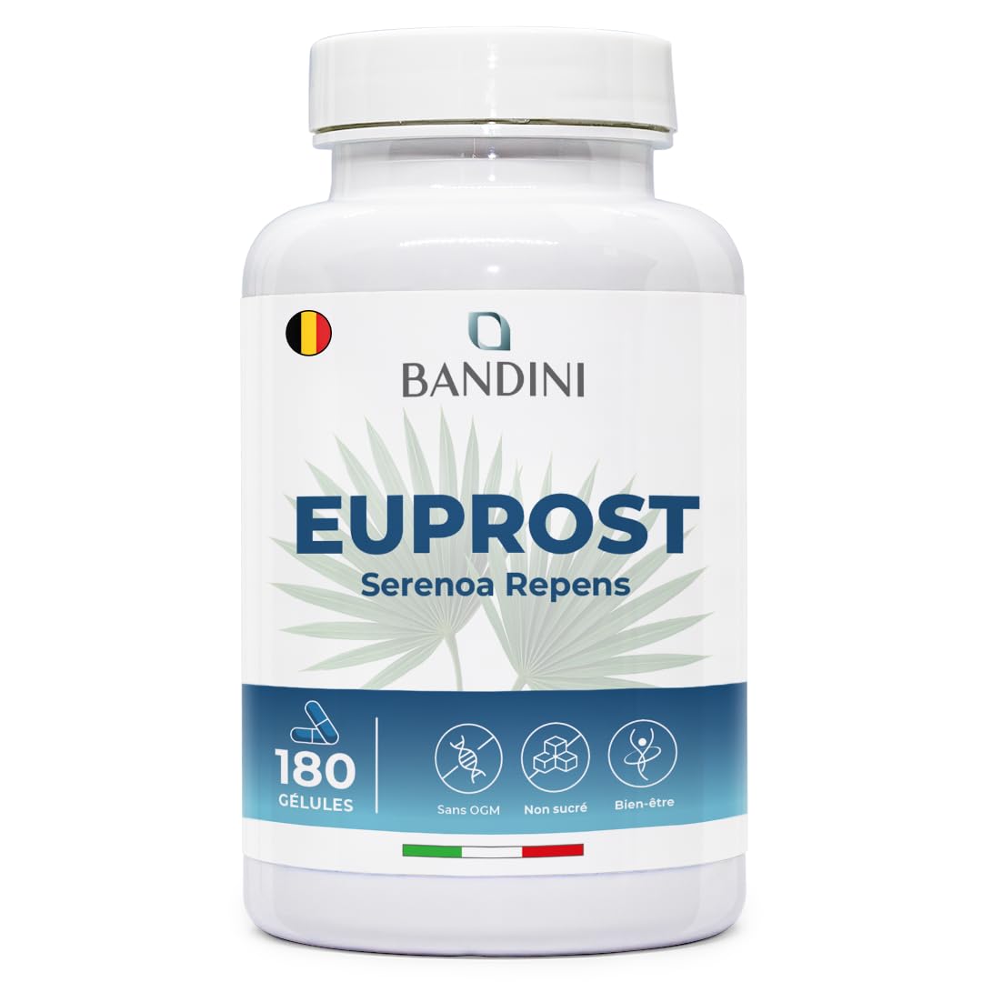 CERTIFIED PRODUCT. Bandini Pharma is an Italian company that offers innovative, high-quality health and wellness products with dynamism and professionalism. Our products are manufactured in our GMP, KOSHER, HALAL, UNI EN ISO 9001:2015, and ISO 22000:2018 certified laboratory. Our range, entirely made in Italy, includes a wide selection of products offering excellent value for money. PROVEN QUALITY. Our food supplements are made from rigorously selected raw materials. They are high-quality, vegan, GMO-free, and free of unwanted additives, colorings, or preservatives. Our food supplements contain no ingredients of animal origin. We guarantee the highest level of safety and quality for all our products. EASY TO TAKE, LONG-LASTING SUPPLY. Take 1 capsule daily with a glass of water, preferably with a meal. Each box contains 180 easy-to-swallow vegetarian capsules. Just one capsule a day provides a 6-month supply: convenient, easy to use, and designed for daily use. WITH VITAMINS AND MINERALS THAT BENEFICIALLY SUPPLEMENT MEN'S LIFESPAN. In addition to plant-based ingredients, each daily dose provides essential vitamins and minerals for overall well-being. Zinc contributes to normal fertility and reproduction, as well as the maintenance of normal testosterone levels in the blood . Vitamin D contributes to the normal function of the immune system , while vitamin B6 contributes to the regulation of hormonal activity . Indications approved by the EFSA. WITH 6 SELECTED NATURAL INGREDIENTS. Our formula is designed for adult men and contains a blend of 6 naturally sourced ingredients, including a highly concentrated extract of Serenoa Repens (saw palmetto) at a ratio of 20:1. The formula is further enriched with nettle powder, pumpkin seeds, zinc, vitamin D3, and vitamin B6. All ingredients have been carefully selected to provide a complete dietary supplement that is easy to incorporate into your daily routine.Bandini Euprost Serenoa Repens 180 gélules pour 6 mois Palmier nain (Saw Palmetto) 20:1, Graines de Courge, Ortie, Zinc, Vitamine D3 et B6 Confort Urinaire pour hommes Végan Sans AdditifsPRODUIT CERTIFIÉ. Bandini Pharma est une entreprise italienne qui propose des produits de santé et de bien-être innovants et de haute qualité, avec dynamisme et professionnalisme. Nos produits sont fabriqués dans notre laboratoire certifié BPF, KOSHER, HALAL, UNI EN ISO 9001:2015 et ISO 22000:2018. Notre gamme, entièrement fabriquée en Italie, comprend un large choix de produits d'un excellent rapport qualité-prix. QUALITÉ ÉPROUVÉE. Nos compléments alimentaires sont élaborés à partir de matières premières rigoureusement sélectionnées. Ils sont de haute qualité, véganes, sans OGM et sans additifs, colorants ni conservateurs indésirables. Nos compléments alimentaires ne contiennent aucun ingrédient d'origine animale. Nous garantissons le plus haut niveau de sécurité et de qualité pour tous nos produits. FACILE À PRENDRE, RÉSERVE DE LONGUE DURÉE. Prendre 1 gélule par jour avec un verre d'eau, de préférence au cours d'un repas. Chaque boîte contient 180 gélules végétales faciles à avaler. Une seule gélule par jour suffit pour 6 mois d'approvisionnement : pratique, facile à utiliser et conçu pour un usage quotidien. AVEC DES VITAMINES ET DES MINÉRAUX BÉNÉFIQUES POUR LES HOMMES. En plus des ingrédients d'origine végétale, chaque dose journalière apporte des vitamines et des minéraux essentiels au bien-être général. Le zinc contribue à une fertilité et une reproduction normales, ainsi qu'au maintien d'un taux normal de testostérone dans le sang . La vitamine D contribue au fonctionnement normal du système immunitaire , tandis que la vitamine B6 contribue à la régulation de l'activité hormonale . Indications approuvées par l'EFSA. AVEC 6 INGRÉDIENTS NATURELS SÉLECTIONNÉS. Notre formule est conçue pour les hommes adultes et contient un mélange de 6 ingrédients d'origine naturelle, dont un extrait hautement concentré de Serenoa Repens (palmier nain) à un ratio de 20:1. La composition est complétée par de la poudre d'ortie, des graines de courge, du zinc, de la vitamine D3 et de la vitamine B6. Tous les ingrédients ont été soigneusement sélectionnés pour offrir un complément alimentaire complet, facile à intégrer à votre routine quotidienne.