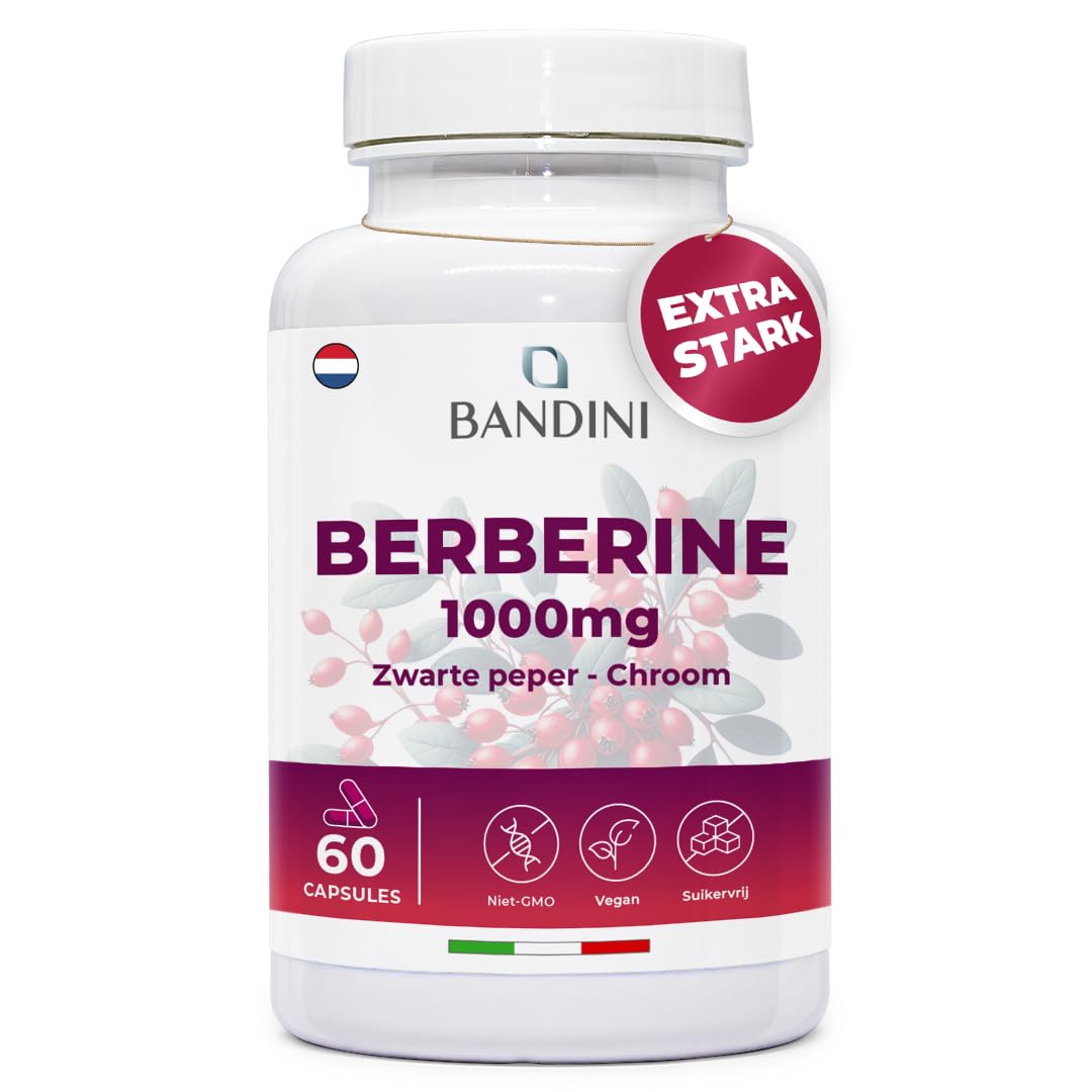 CERTIFIED PRODUCT. Bandini Pharma is an Italian company that offers innovative and high-quality health and wellness products in a dynamic and professional way: our products are manufactured in our GMP, KOSHER AND HALAL, UNI EN ISO 9001:2015 and ISO 22000 certified laboratory. Entirely made in Italy, our line includes a wide range of products with excellent value for money. TESTED QUALITY. Our supplements are made from carefully selected raw materials. Our nutritional supplements are of high quality, vegan, GMO-free and produced without additives, colorings or unwanted preservatives. Our nutritional supplements do not contain any ingredients of animal origin. We guarantee the highest level of safety and quality for all our products. METHOD OF USE The beneficial effect is achieved by taking 2 capsules per day. The daily dose contains 1000 mg Berberine and 50 mcg Chromium. Each package contains 60 capsules for a 1-month treatment. The color of the capsules may vary. Packaging may vary. INTESTIN AND DIGESTION: Berberine supports digestion and liver function, promotes the regularity of intestinal transit and supports the function of the digestive system. Chromium contributes to normal macronutrient metabolism and the maintenance of normal blood sugar levels, thus supporting energy balance and proper functioning of the body. HIGH QUALITY, HIGH DOSAGE: Our Berberine extract comes from the root of Berberis aristata, native to the northern Himalayas, known for its many properties and uses compared to other species such as Berberis vulgaris. Each capsule contains 500 mg of 97 Berberis aristata and is enriched with chromium to support macronutrient metabolism. The presence of black pepper increases the absorption and effectiveness of berberine in the body.Bandini Berberine 1000mg pure hoge dosering Zuiver Berberin HCl uit Berberis Aristata 97 Chroom en Zwarte Peper Maximale opname Spijsvertering, lever,darmfunctie 60 veganistische capsulesGECERTIFICEERD PRODUCT. Bandini Pharma is een Italiaans bedrijf dat innovatieve en hoogwaardige gezondheids- en welzijnsproducten aanbiedt op een dynamische en professionele manier: onze producten worden vervaardigd in ons GMP, KOSHER EN HALAL, UNI EN ISO 9001:2015 en ISO 22000 gecertificeerde laboratorium. Onze lijn, volledig gemaakt in Italië, omvat een breed scala aan producten met een uitstekende prijs-kwaliteitverhouding. GETESTE KWALITEIT. Onze supplementen worden gemaakt van zorgvuldig geselecteerde grondstoffen. Onze voedingssupplementen zijn van hoge kwaliteit, veganistisch, GMO-vrij en geproduceerd zonder additieven, kleurstoffen of ongewenste conserveringsmiddelen. Onze voedingssupplementen bevatten geen ingrediënten van dierlijke oorsprong. Wij garanderen het hoogste niveau van veiligheid en kwaliteit voor al onze producten. GEBRUIKSWIJZE Het gunstige effect wordt bereikt door 2 capsules per dag in te nemen. De dagelijkse dosis bevat 1000 mg Berberine en 50 mcg Chroom. Elke verpakking bevat 60 capsules voor een kuur van 1 maand. De kleur van de capsules kan variëren. Verpakking kan variëren. INTESTINE EN DIGESTIE: Berberine ondersteunt de spijsvertering en de leverfunctie, bevordert de regelmatigheid van de darmtransit en ondersteunt de functie van het spijsverteringsstelsel. Chroom draagt bij tot een normaal metabolisme van macronutriënten en het behoud van normale bloedsuikerspiegels, en ondersteunt zo de energiebalans en het goed functioneren van het lichaam. HOGE KWALITEIT, HOGE DOSAGE: Ons Berberine-extract is afkomstig van de wortel van Berberis aristata, inheems in de noordelijke Himalaya, bekend om zijn vele eigenschappen en toepassingen in vergelijking met andere soorten zoals Berberis vulgaris. Elke capsule bevat 500 mg van 97 Berberis aristata en is verrijkt met chroom om het metabolisme van macronutriënten te ondersteunen. De aanwezigheid van zwarte peper verhoogt de absorptie en werkzaamheid van berberine in het lichaam.