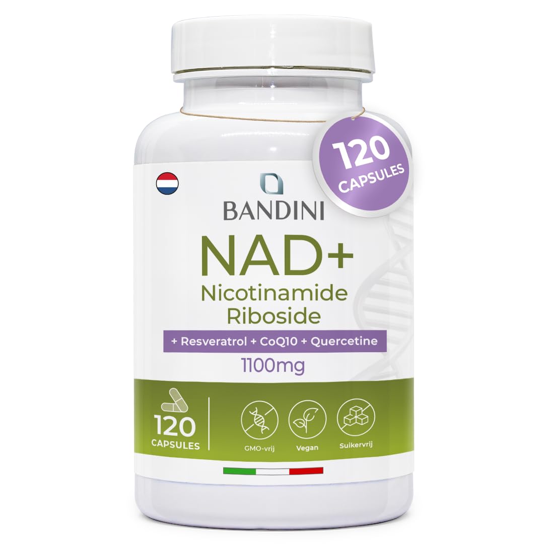 INGREDIENTS Liposomal nicotinamide riboside chloride, sunflower lecithin, quercetin (from flowers of Sophora japonica L.), vegetable capsule (coating agent: hydroxypropyl methylcellulose) trans-resveratrol, coenzyme Q10 (ubiquinone), rice flour.CERTIFIED PRODUCT: Bandini Pharma is an Italian company that offers innovative, high-quality products in a dynamic and professional way: our products are produced in our GMP, KOSHER and HALAL, UNI EN ISO 9001:2015 and ISO 22000:2018 certified laboratory. Our range, entirely produced in Italy, includes a wide range of products with excellent value for money. PROVEN QUALITY: Our supplement is made from carefully selected raw materials. Our nutritional supplements are of high quality, vegan, GMO-free and produced without unwanted additives, colorings or preservatives. Our nutritional supplements do not contain any ingredients of animal origin. We guarantee the highest level of safety and quality for all our products. DIRECTIONS FOR USE: We recommend taking 2 capsules per day, preferably during a meal, for better absorption. To get the most out of this product, it is advisable to maintain a consistent routine and incorporate the supplement into your daily routine in an easy and convenient way. ADVANCED FORMULA: NAD is a substance present in all cells of the body and involved in normal energy functions. Over time, NAD levels decrease. Our supplement is designed to naturally support this important component so you can maintain your vitality easily and safely. THE IDEAL SUPPORT FOR YOUR METABOLISM: Our supplement contains NAD in a form designed to promote effective absorption and good bioavailability. The formula contains 1100 mg nicotinamide riboside per serving, which supports the natural energy production process in cells and thus contributes to the maintenance of daily well-being and an active lifestyle.Bandini NAD liposomaal 120 capsules NAD supplement nicotinamide riboside chloride Quercetine, Resveratrol, Co-enzym Q10 Anti-aging, Energiemetabolisme 1100mg per portie 100 Vegan, Non-GMO INGREDIËNTEN Liposomaal nicotinamide riboside chloride, zonnebloemlecithine, quercetine (uit bloemen van Sophora japonica L.), plantaardige capsule (coatingmiddel: hydroxypropylmethylcellulose) trans-resveratrol, co-enzym Q10 (ubiquinone), rijstmeel.GECERTIFICEERD PRODUCT: Bandini Pharma is een Italiaans bedrijf dat innovatieve, hoogwaardige producten op een dynamische en professionele manier aanbiedt: onze producten worden geproduceerd in ons GMP-, KOSHER- en HALAL-, UNI EN ISO 9001:2015- en ISO 22000:2018-gecertificeerd laboratorium. Ons assortiment, volledig geproduceerd in Italië, omvat een breed scala aan producten met een uitstekende prijs-kwaliteitverhouding. BEWEZEN KWALITEIT: Ons supplement is gemaakt van zorgvuldig geselecteerde grondstoffen. Onze voedingssupplementen zijn van hoge kwaliteit, veganistisch, GMO-vrij en geproduceerd zonder ongewenste toevoegingen, kleurstoffen of conserveermiddelen. Onze voedingssupplementen bevatten geen ingrediënten van dierlijke oorsprong. Wij garanderen het hoogste niveau van veiligheid en kwaliteit voor al onze producten. GEBRUIKSAANWIJZING: Wij raden aan om 2 capsules per dag in te nemen, bij voorkeur tijdens de maaltijd, voor een betere opname. Om het maximale uit dit product te halen, is het raadzaam een consistente routine aan te houden en het supplement op een eenvoudige en handige manier in uw dagelijkse routine op te nemen. GEAVANCEERDE FORMULE: NAD is een stof die in alle cellen van het lichaam aanwezig is en betrokken is bij normale energiefuncties. Na verloop van tijd nemen de NAD -niveaus af. Ons supplement is ontworpen om deze belangrijke component op natuurlijke wijze te ondersteunen, zodat u uw vitaliteit eenvoudig en veilig kunt behouden. DE IDEALE ONDERSTEUNING VOOR UW STOFWISSELING: Ons supplement bevat NAD in een vorm die is ontworpen om een effectieve opname en een goede biologische beschikbaarheid te bevorderen. De formule bevat 1100 mg nicotinamide riboside per portie, wat het natuurlijke energieproductieproces in cellen ondersteunt en zo bijdraagt aan het behoud van een dagelijks welzijn en een actieve levensstijl.