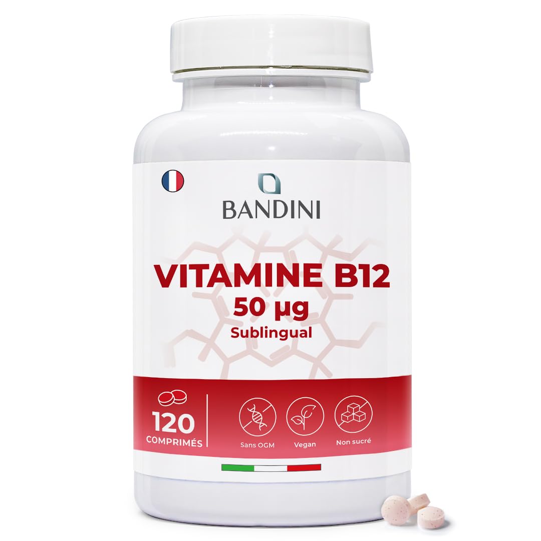 Bandini Vitamine B12 sublinguale 120 comprimés - Cyanocobalamine 50 µg - Vitamin B-12 pour le Système immunitaire, le métabolisme énergétique la fatigue - Absorption élevée - 100 Végan, Sans OGM