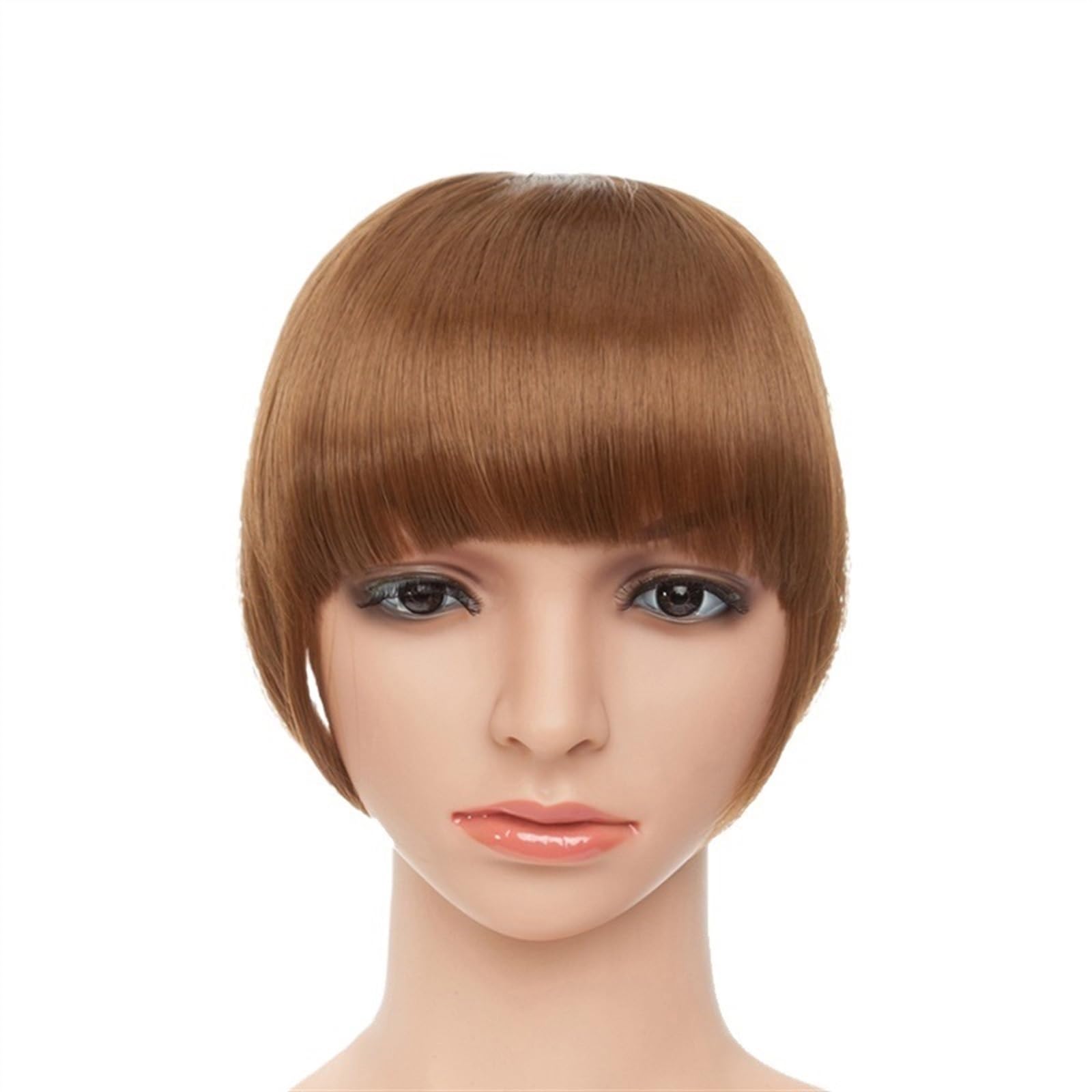 Bangs Hair Clip Fake Bangs Synthetic Blunt Bang Clip in Hair Extension Women Blunts Fringe Hair Black Brown Bangs 2 Clips Bangs Clip in Hair(Color:Light brown) 8inch Light brown