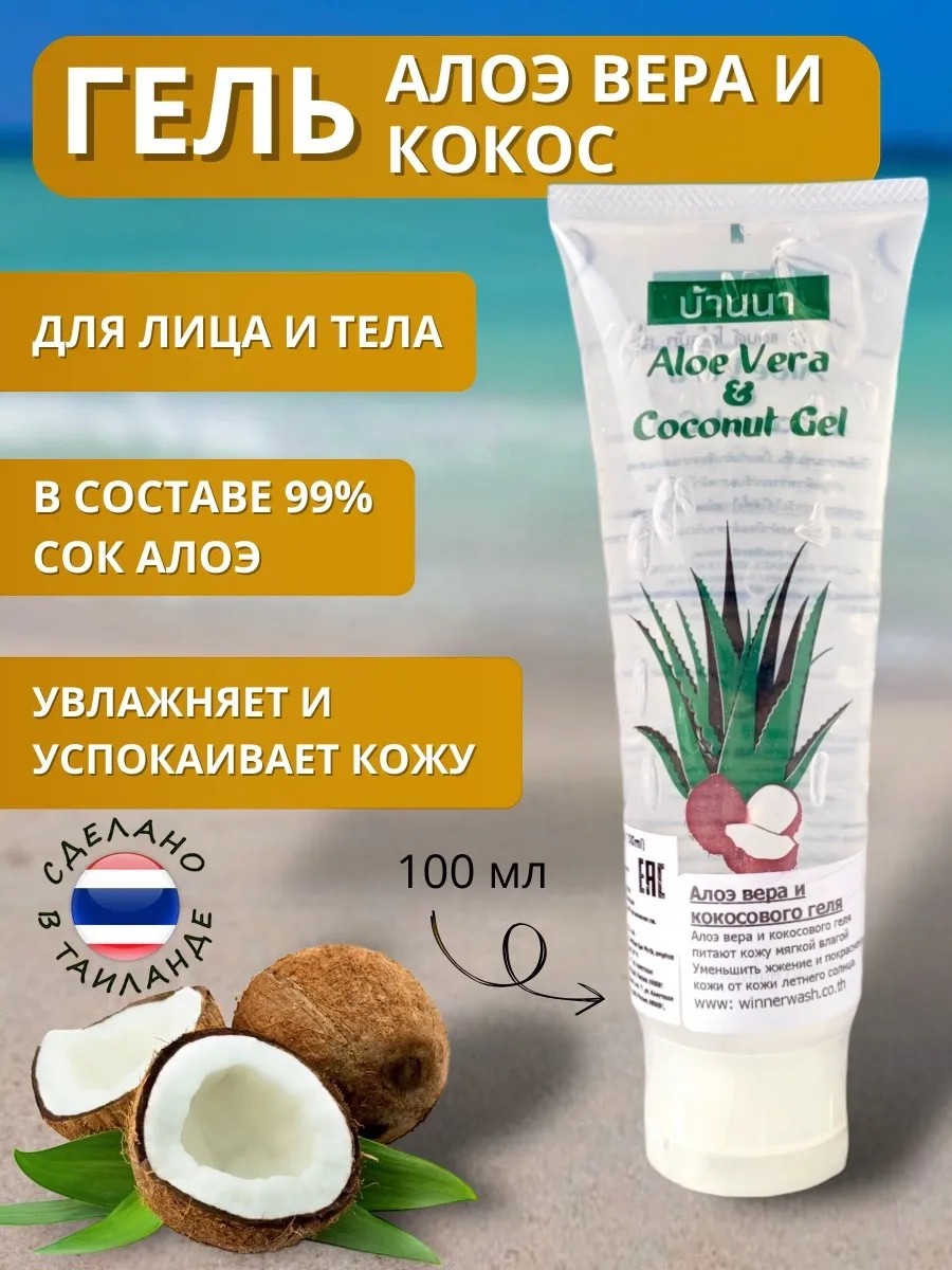 Гель с натуральным кокосовым маслом и алоэ вера - питает, увлажняет, успокаивает и защищает кожу от негативного воздействия солнечных лучей. Гель эффективен при ожогах - снимает раздражение и воспаление кожи. Оказывает дезинфицирующее действие и поддерживает водный баланс кожи. Применяется также после бритья, депиляции и эпиляции.