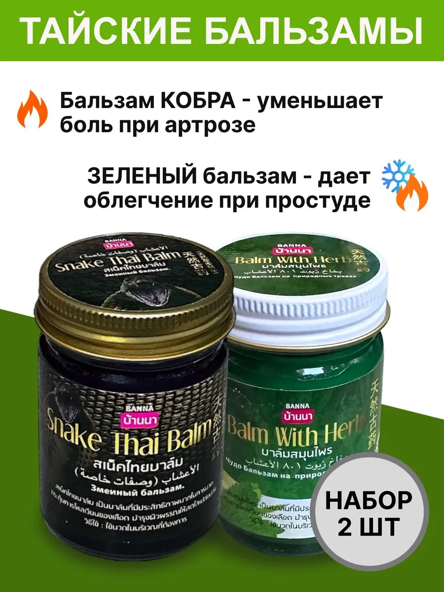 | Комплектация | Крем-бальзам Зеленый 1 шт - 50 мл; Крем-бальзам Черная кобра 1 шт - 50 мл |