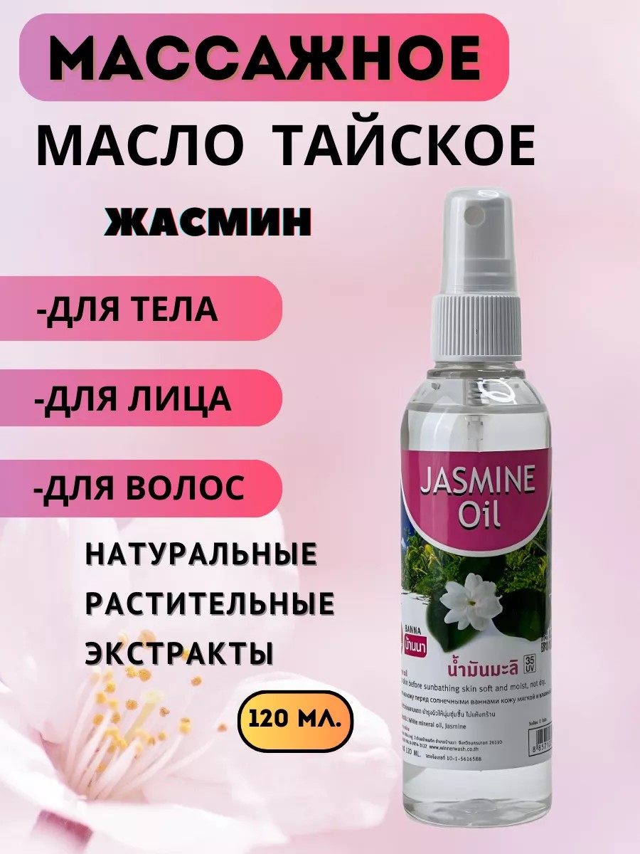 Масло массажное тайское - это универсальное косметическое средство, которое может быть использовано для увлажнения и ухода за волосами, кожей тела и лица. Увлажняющее средство для тела с экстрактом и ароматом жасмина отлично подходит для любого типа кожи, сделает вашу кожу гладкой и сияющей. Масло для массажа тела содержит витамин Е, натуральные компоненты фруктов и обладает множественными полезными свойствами. Масло производства Таиланд можно применять для восстановления кончиков волос, для массажа лица скребком гуаша, как средство против растяжек, как масло для загара. Массаж с использованием натурального масла не только приятен, но и полезен для внешнего состояния тела - оно обладает отличными увлажняющими свойствами, питает кожу и способствует расслаблению мышц, содержит антиоксиданты, быстро впитывается и не забивает поры.