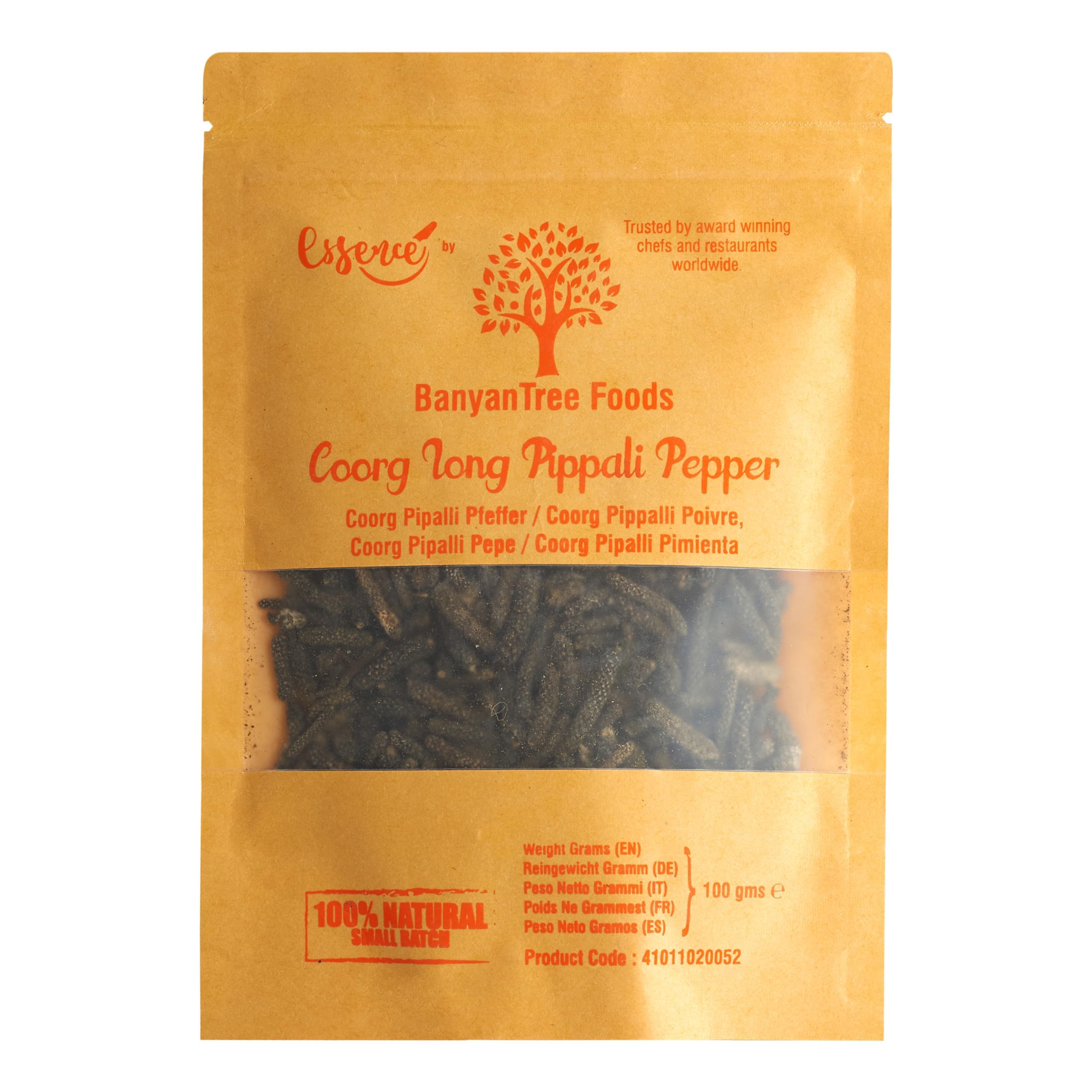 This Pippali chili comes from a family spice farm in Kerala, India. This pepper was hand picked, dried and processed during the last harvest season. Be it seafood, vegetarian curries, sweet and spicy fruit salads, or even non-vegetarian dishes, our long chilli pippali will be the perfect 100 pure and natural addition. Manufactured in an ISO 22000: 2005 certified factory. Our products are packaged as natural and as fresh as possible. BanyanTree Foods refill pouches come with a snap closure - ideal for sealing in freshness and aroma and refilling as needed. We are BanyanTree Foods, an employee cooperative born from our shared love of exceptional food. We are a team that shares the passion that goes into producing unique food plates with high taste, finesse and quality. BanyanTree Foods ingredients are used by several Michelin-rated chefs and restaurants in London. We are a producer member of the Guild of Fine Food. To find out more about us, please visit www.banyantreefoods.co.uk INGREDIENTS 100 long pepperWe are BanyanTree Foods, an employee cooperative born from our shared love of exceptional food. We are a team that shares the passion that goes into producing unique food dishes with high taste, finesse, and quality. BanyanTree Foods ingredients are used by several Michelin-rated chefs and restaurants in London. We are a producer and member of the Guild of Fine Food. To learn more about us, please visit www.banyantreefoods.co.uk. Whether it's seafood, vegetarian curries, sweet and spicy fruit salads, or even non-vegetarian dishes, our long pippali chili peppers will be the perfect complement. They are hand-picked, dried, and processed during the last harvest season. Pure and 100 natural. These plantation-fresh peppers come from a family-owned spice farm in Kerala, India. Ce piment Pippali provient d'une ferme d'épices familiale au Kerala, en Inde. Ce poivre a été cueilli à la main, séché et transformé au cours de la dernière saison de récolte. Qu'il s'agisse de fruits de mer, de curry végétariens, de salades de fruits sucrées et épicées, ou même de plats non végétariens, notre long piment pippali sera le complément parfait 100 pur et naturel. Fabriqué en usine certifiée ISO 22000 : 2005. Nos produits sont emballés aussi naturels et aussi frais que possible. Les sachets de recharge BanyanTree Foods sont livrés avec une fermeture à pression – Idéal pour sceller la fraîcheur et l'arôme et les remplir selon les besoins. Nous sommes BanyanTree Foods, une coopérative d'employés issue de notre amour commun pour la nourriture exceptionnelle. Nous sommes une équipe qui partage la passion qui va dans la production d'assiettes alimentaires uniques avec un goût, une finesse et une qualité élevées. Les ingrédients BanyanTree Foods sont utilisés par plusieurs chefs et restaurants classés Michelin à Londres. Nous sommes un producteur membre de la Guild of Fine Food. Pour en sa sur nous, veuillez visiter www.banyantreefoods.co.uk INGRÉDIENTS 100 poivre longNous sommes BanyanTree Foods, une coopérative d'employés issue de notre amour commun pour la nourriture exceptionnelle. Nous sommes une équipe qui partage la passion qui va dans la production d'assiettes alimentaires uniques avec un goût, une finesse et une qualité élevées. Les ingrédients BanyanTree Foods sont utilisés par plusieurs chefs et restaurants classés Michelin à Londres. Nous sommes un producteur membre de la Guild of Fine Food. Pour en sa sur nous, veuillez visiter www.banyantreefoods.co.uk. Que ce soit des fruits de mer, des currys végétariens, des salades de fruits sucrées et épicées ou même des plats non végétariens, notre long piment pippali sera le complément parfait. Ils ont été cueillis à la main, séchés et transformés au cours de la dernière saison de récolte. Pure et 100 naturelle. Ces poivrons frais de plantation proviennent d'une ferme d'épices familiale au Kerala, en Inde.
