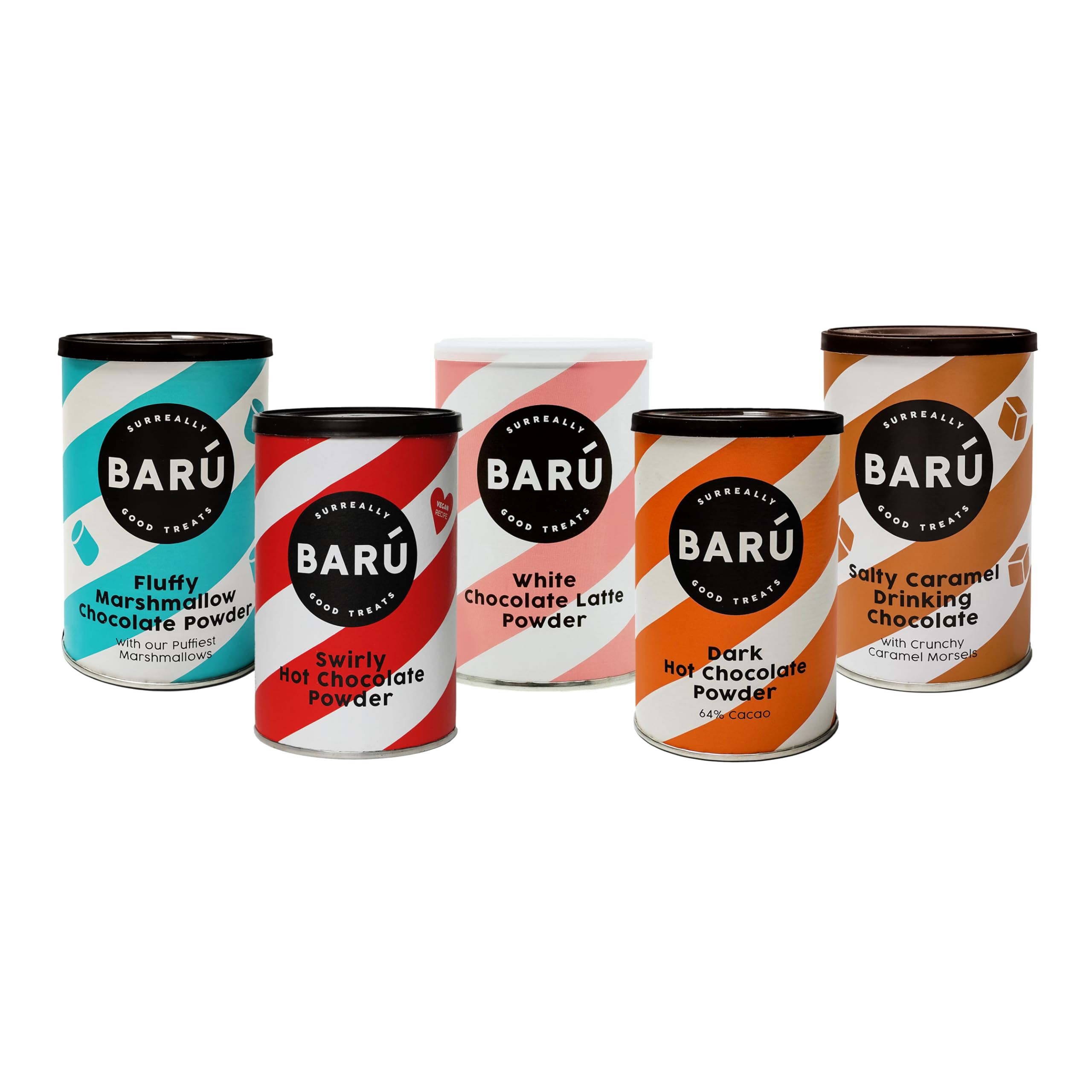 Barú Assortiment de Chocolats Chauds – Marshmallow Moelleux, Chocolat Noir, Caramel Salé, Chocolat Blanc Swirly – 5 x 250 g – 60 tasses Mix