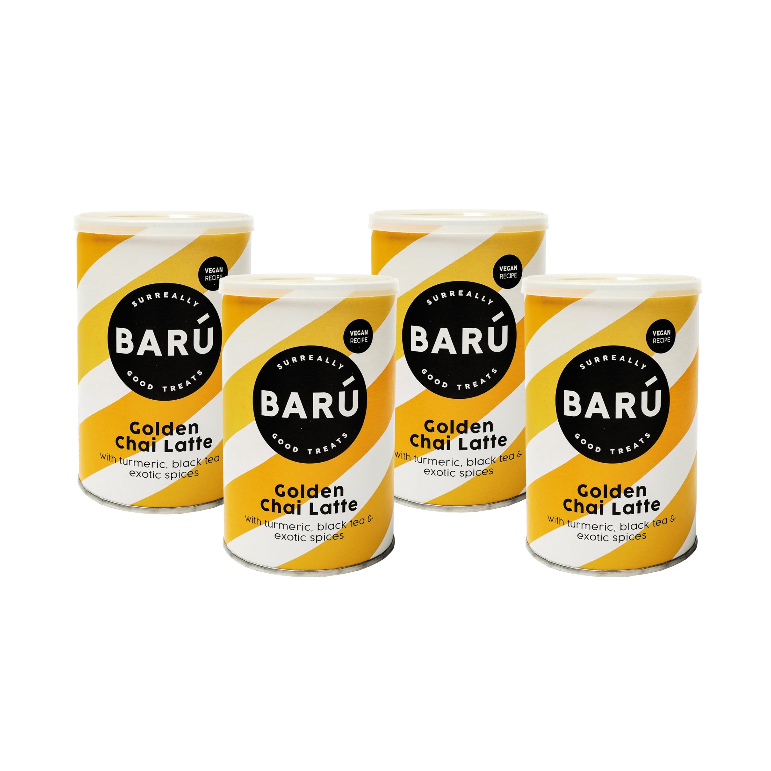 BARÚ Golden Chai Latte – Instant Tea Powder – 4 × 250 g – 64 servings is a warming blend of black tea, turmeric and aromatic spices that provides a moment of peace, glow and comfort. The combination of turmeric, cinnamon, ginger and cardamom makes this latte spicy, soft and invigorating - perfect for those looking for a warm alternative to coffee or regular tea. Thanks to the instant powder, you can enjoy it in less than a minute: simply mix with milk. Also refreshing as iced chai. With 4 jars of 250 g you have enough for 64 sunny latte portions. 100 vegan and free of artificial additives. Treat yourself to a daily moment of golden me-time with this delicious chai from BARÚ. INGREDIENTS Sugar, skimmed milk powder, black tea, glucose syrup, coconut oil, spices (cinnamon, ginger, cardamom, nutmeg), sea salt, natural flavouring.Barú Golden Chai Latte – Pack de 4 x250g – Préparation instantanée au thé noir, épices curcuma – 48 tasses - Vegan, naturel, sans arômes artificiels – Fait main en Belgique BARÚ Golden Chai Latte – Instant Theepoeder – 4 × 250 g – 64 porties is een verwarmende blend van zwarte thee, kurkuma en aromatische specerijen die zorgt voor een moment van rust, glans en comfort. De combinatie van kurkuma, kaneel, gember en kardemom maakt deze latte kruidig, zacht én verkwikkend – perfect voor wie een warm alternatief zoekt voor koffie of gewone thee. Dankzij het instant poeder geniet je in minder dan een minuut: gewoon mengen met melk. Ook verfrissend als iced chai. Met 4 potten van 250 g heb je genoeg voor 64 zonnige latteporties. 100 vegan en vrij van kunstmatige toevoegingen. Trakteer jezelf op een dagelijks moment van gouden me-time met deze heerlijke chai van BARÚ. INGREDIËNTEN Suiker, magere melkpoeder, zwarte thee, glucosestroop, kokosolie, specerijen (kaneel, gember, kardemom, nootmuskaat), zeezout, natuurlijk aroma.