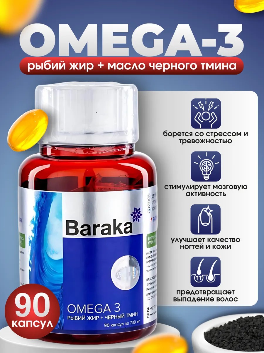 Baraka capsules, containing omega-3 cod fish oil and black seed oil, are a powerful tool for maintaining and improving health.