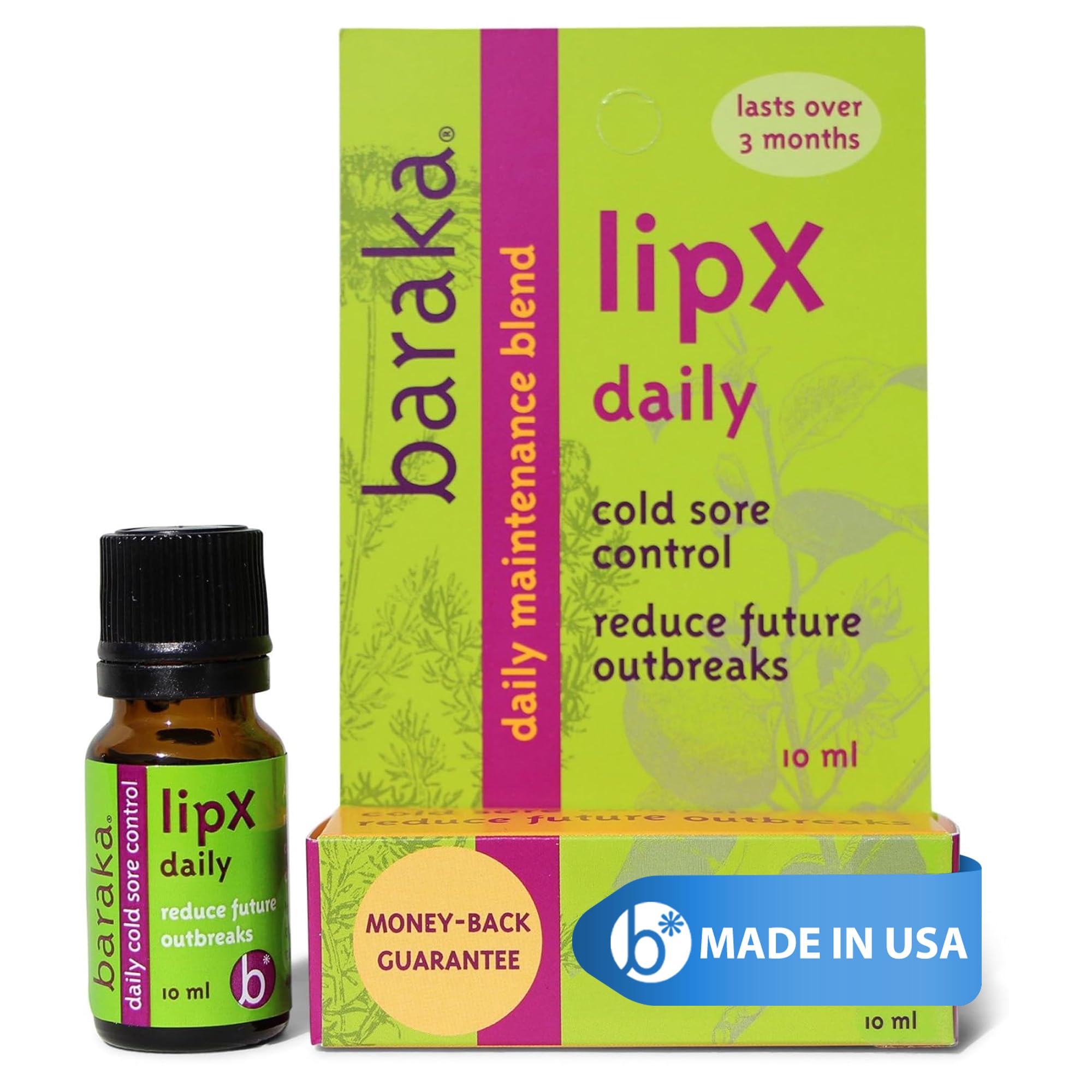 Baraka LipX Daily - Natural Cold Sore & Lip Blister Remedy - Made with Essential Oils of Tea Tree Hyssop Decumbens Melissa Palmarosa Lavandin & Eucalyptus Sesame Base Organic - 10ml (1 - Pack) 0.14 Fl Oz (Pack of 1) Da