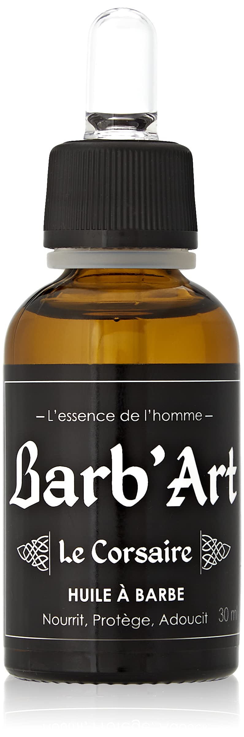 This "Le Corsaire" Beard Oil, by Barb'Art, is handcrafted for all beard types. Available in 30ml and 50ml sizes, the formula is primarily composed of organic plant oils: nourishing and regenerating argan oil, repairing and anti-aging jojoba oil, and protective and softening sesame oil. The ingredients are natural, mostly sourced from organic farming. Protecting and soothing the skin from irritation, this beard oil releases subtle fresh scents, followed by hints of spice, without being overpowering. This softening men's grooming oil strengthens the beard, restoring its natural shine. The ideal solution for a well-groomed beard. Originating from southwest France, "Le Corsaire" beard oil is for all those who want to take care of their appearance by giving their beard the best possible care. The ideal product for daily use, with no risk of damaging your skin or beard—quite the opposite! INGREDIENTS Argan oil , Jojoba oil , Sesame oil , fragrance. DIRECTIONS Warm a few drops of beard oil between your hands and apply thoroughly to your beard. The oil nourishes and leaves a pleasant, fresh, and subtly spicy scent. SAFETY WARNING For external use only. See moreMADE IN FRANCE: Founded in 2015, Barb'Art is a French company specializing in natural cosmetics for men. All Barb'Art products sold on are made in France… with love! PRACTICAL: This beard oil comes in a 30ml recyclable glass bottle. Its integrated dropper allows you to dispense only the necessary number of drops to care for your beard, without making a mess. FRAGRANCE: "Le Corsaire" beard oil has a fresh mint scent followed by fruity, woody, and amber notes. It combines freshness and sun-kissed energy for a revitalized beard. The fragrance then fades to avoid being overpowering. MAXIMUM NATURAL: This beard oil is composed of 98 organic ingredients. A natural product, specially designed for all beard types. A rich, discreet, handcrafted treatment. MAGNIFICENT BEARD OIL: This exceptional, fragrant beard oil nourishes the hair for a softer, more pleasant beard. It also nourishes the skin.Barb'Art - Huile Barbe Magnifique - Entretien barbe - Huiles bio d'Argan, Sésame et Jojoba - "Le Corsaire" - 30 mlDESCRIPTION DU PRODUIT DESCRIPTION DU PRODUIT Cette Huile à Barbe « Le Corsaire », signée Barb'Art, est fabriquée de manière artisanale pour tous les types de barbe. Une formule disponible en formats 30 et 50 ml, composée principalement d'huiles végétales bio d'argan nourrissante et régénérante, de jojoba réparatrice et anti-âge et de sésame, protectrice et assouplissante. Des ingrédients naturels, issus en majorité de l'agriculture biologique. Protégeant et apaisant la peau des irritations, cette huile à barbe dévoile de subtiles senteurs fraîches, puis d'épices, sans pour autant être trop intrusive. Un soin pour homme, adoucissant, qui vise à renforcer le poil afin de lui rendre tout son éclat. La solution idéale pour une barbe bien entretenue. Originaire du sud-ouest de la France, l'huile à barbe « Le Corsaire » est dédiée à tous ceux qui souhaitent prendre soin de leur apparence en s'occupant du mieux possible de leur barbe. Le produit idéal pour une utilisation quotidienne, sans risque de s'abîmer la peau ou le poil, bien au contraire ! INGRÉDIENTS Huile végétale d'Argan , huile végétale de Jojoba , huile végétale de Sésame , parfum. MODE D'EMPLOI Faire chauffer quelques gouttes d'huile à barbe entre vos mains et appliquer sur votre barbe en profondeur. L'huile nourrit et dépose une agréable senteur fraiche et délicatement épicée. AVERTISSEMENT DE SÉCURITÉ usage externe Voir plusPRODUCTION FRANÇAISE : Fondée en 2015, Barb'Art est une entreprise française spécialisée dans les cosmétiques naturels dédiés aux hommes. Tous les produits Barb'Art vendus sur sont made in France… avec amour !. PRATIQUE : Cette huile à barbe est contenue dans un flacon en verre recyclable, de 30ml. Sa pipette intégrée permet de ne récupérer que le nombre de gouttes nécessaires pour entretenir sa barbe, sans salir le contenant. PARFUM : L'huile à barbe « Le Corsaire » a des senteurs de menthe fraîche puis fruitées, boisées et ambrées. Elle allie fraîcheur et énergie ensoleillée pour une barbe tonifiée. Le parfum s'estompe ensuite pour ne pas être trop présent. UN MAX DE NATUREL : Cette huile à barbe est composée à 98 d'ingrédients biologiques. Un produit naturel, spécialement conçu pour tous les types de barbe. Un soin riche, discret, de fabrication artisanale. HUILE BARBE MAGNIFIQUE : Cette huile à barbe exceptionnelle, parfumée, nourrit les poils pour une barbe plus douce et plus agréable au toucher. Nourrit aussi la peau.