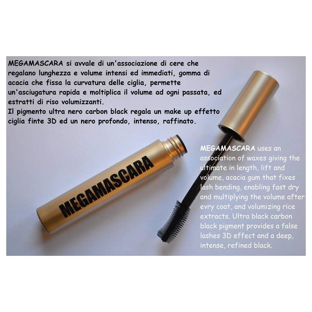Megamascara XXLashes Effect, sensational mascara that gives an incredible "false eyelash" effect from the first use. It features a combination of waxes that instantly give intensive length and volume, acaci rubber that sets the voluminousness of the eyelashes, allows quick drying and increases volume with every train and volume extracts of volume. The ultra-black pigment provides a 3D false eyelash makeup and a deep, intense and refined black. The shaped rubber applicator perfectly adapts to the shape of the eyelashes of the upper and lower eyelash arch, reaches everyone one, the color coating, compacted, perfectly separates and provides a perfect look.Megamascara Xxlashes Effect Megamascara XXLashes Effect, sensationele mascara die al vanaf het eerste gebruik een ongelooflijk "valse wimper"-effect geeft. Het beschikt over een combinatie van was die direct intensieve lengte en volume geven, acacirubber dat de wolving van de wimpers vaststelt, maakt een snelle droging mogelijk en verhoogt het volume bij elke trein en volumeextracten van volume. Het ultra-zwarte pigment biedt een 3D-valse wimpermake-up en een diep, intens en geraffineerd zwart. De gevormde rubberen applicator past zich perfect aan de vorm van de wimpers van de bovenste en onderste wimperboog aan, bereikt iedereen één, de kleurbekleding, verdichtd, perfect scheidt en zorgt voor een perfecte look.