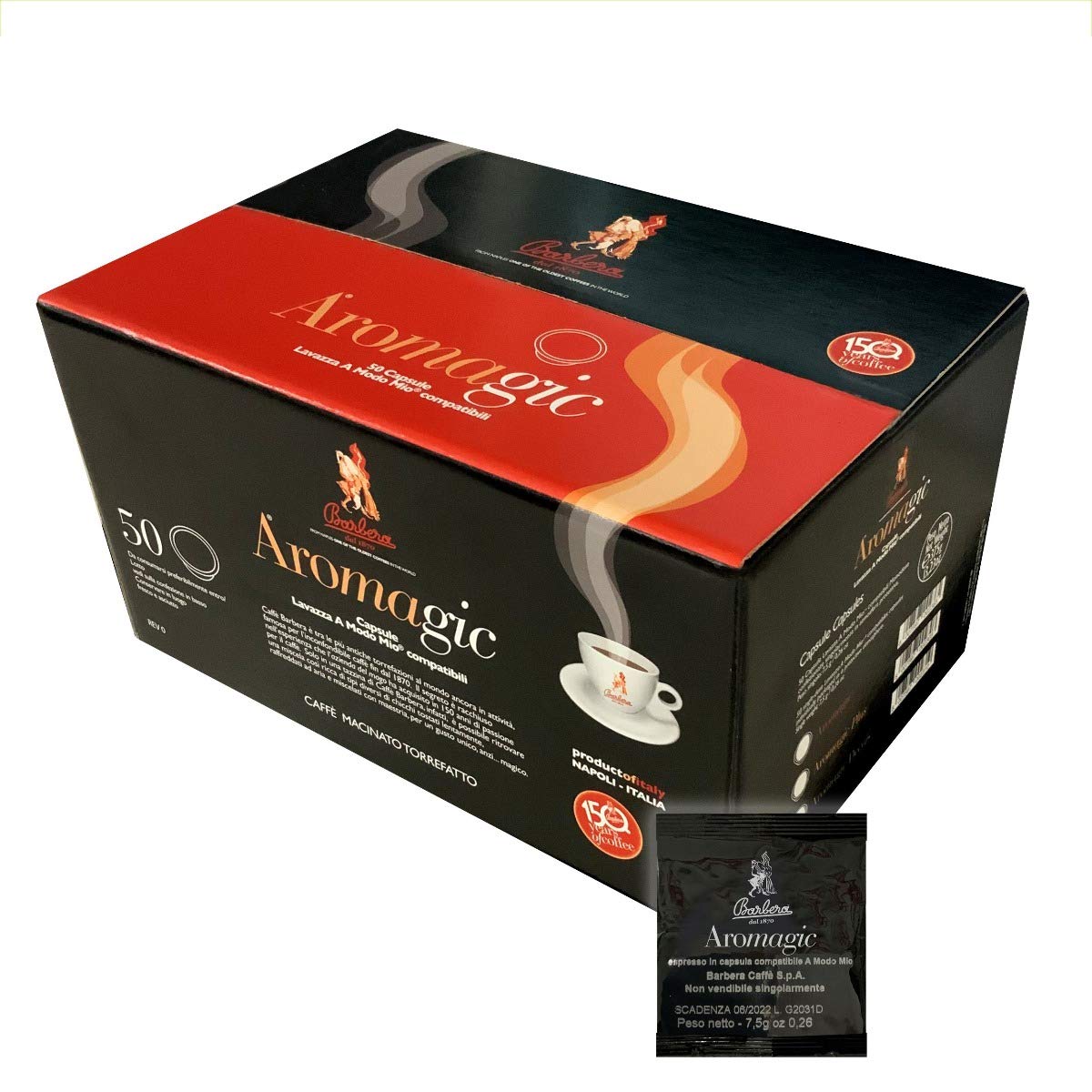 Barbera Caff Barbera Aromagic Compatible Lavazza A Modo Mio Capsules (8 x 50) - Espresso Coffee - Cream - 400 Capsules