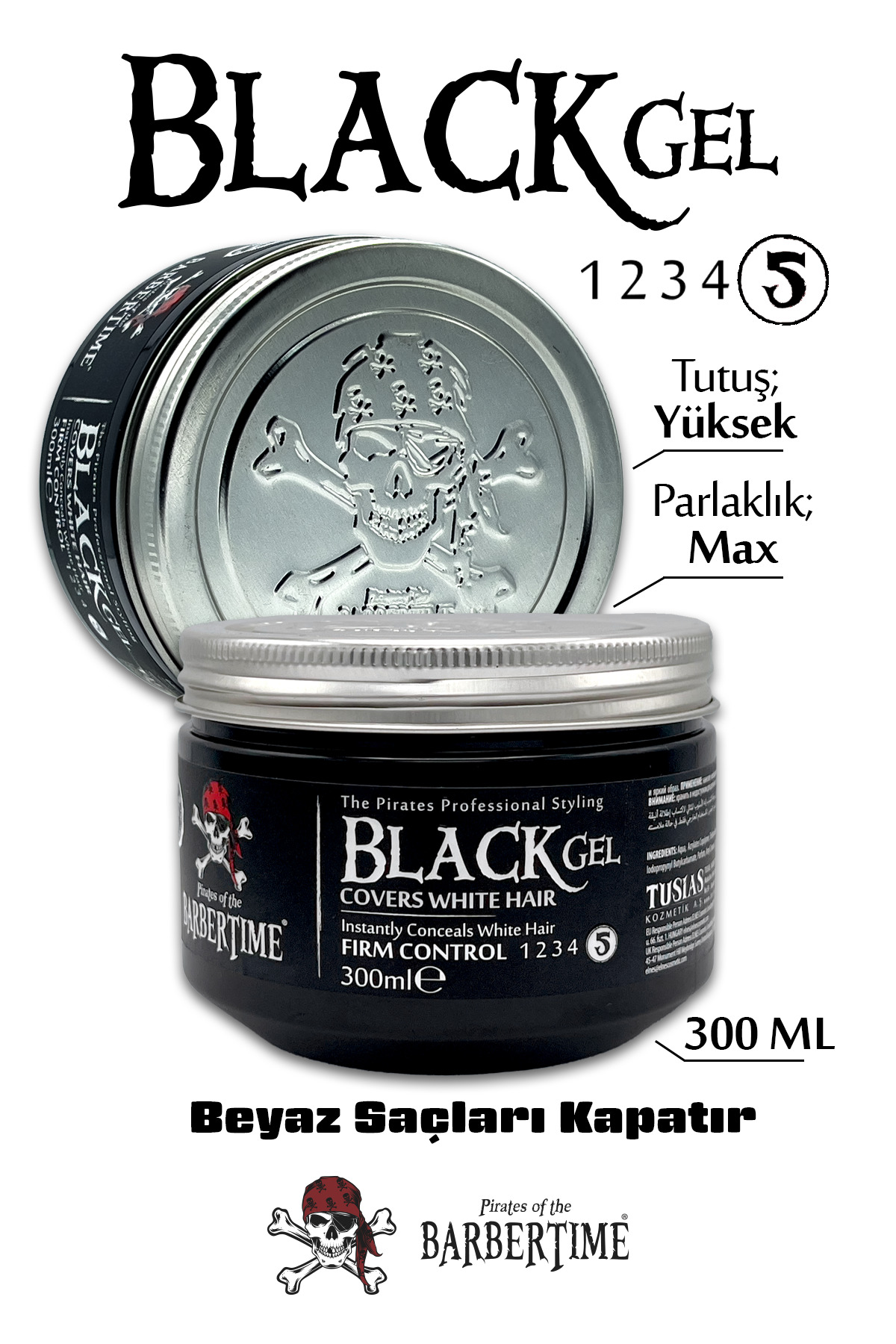 Barbertime Hair Gel Black - Black Hair Gel - Covers White Hair 300 ml