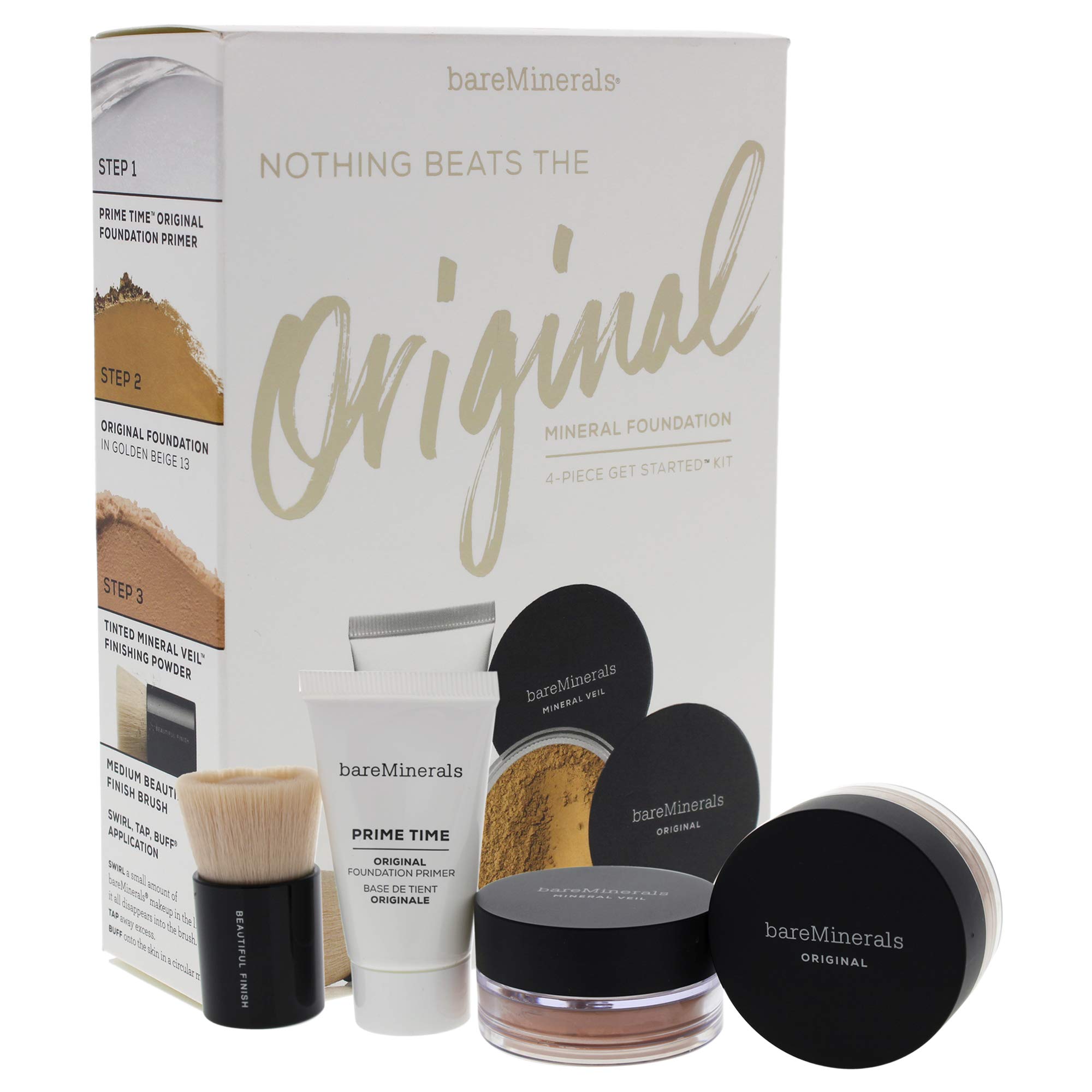bareMinerals Original 4 Piece Mineral Foundation Get Started Kit, (Primer/Foundation/Mineral Veil/Finish Brush)