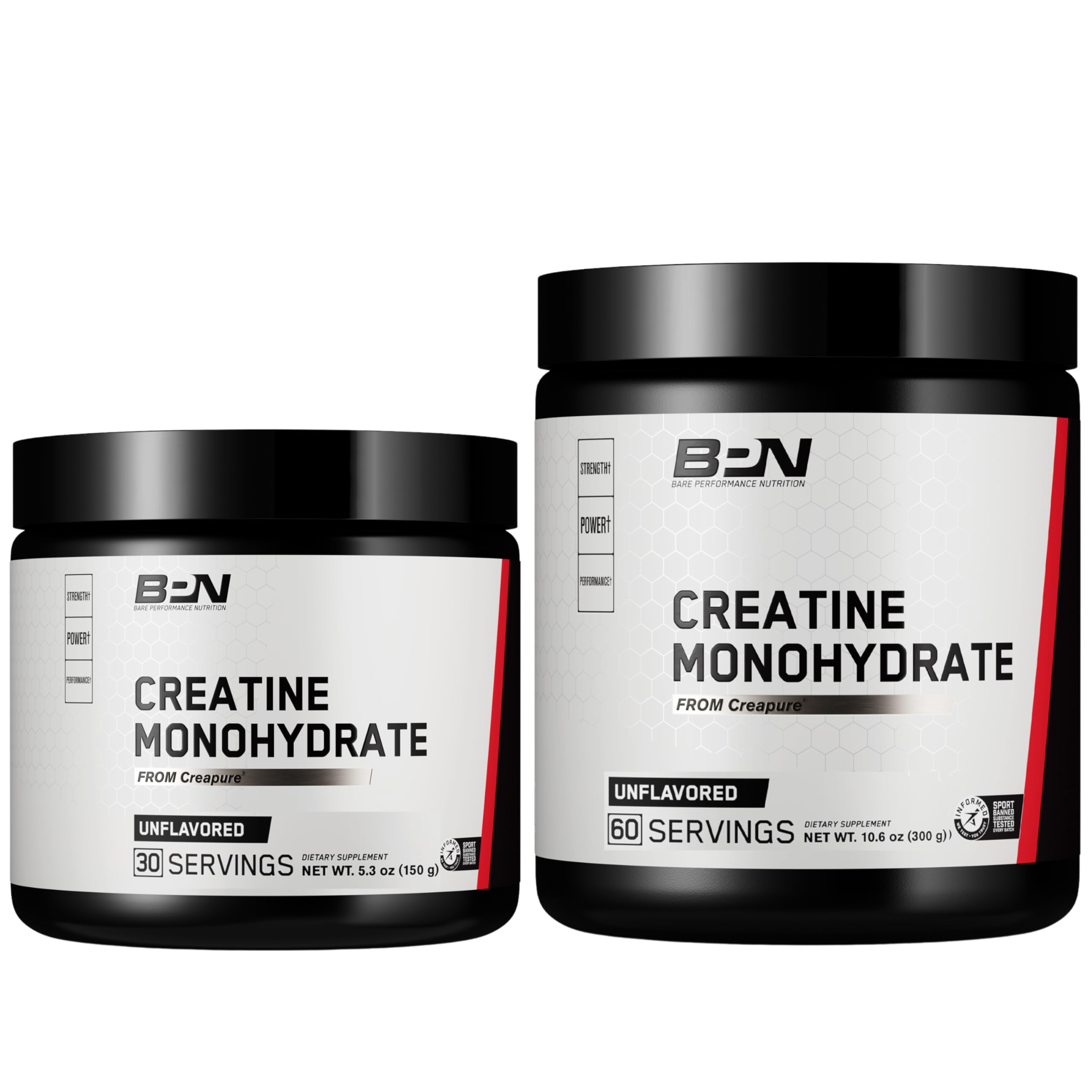 BARE PERFORMANCE NUTRITION: We are a team of driven leaders who are passionate about helping others reach their highest levels of fitness with training, nutrition, and supplementation. We live and train behind the motto, "GO ONE MORE". THIRD-PARTY TESTED FOR BANNED SUBSTANCES: Informed Sport certified products are tested for prohibited substances ensuring you feel comfortable consuming. Date printed on bottle is the Manufacturing Date. Expiration Date is two years after MFG date. PERFORMANCE FOR ALL: Creatine isn't just for Bodybuilders and Fitness Athletes. It is the perfect supplement for sports that require repeated bursts of maximum power – Soccer, Basketball, Football, Baseball, Hockey, Swimming, Track and Field, etc. PRIMARY BENEFITS: Creapure is the brand name for pure creatine monohydrate produced by AlzChem Trostberg GmbH in Germany. It supports regenerating the energy source used by the muscles, ATP, to increase endurance, strength and muscle mass. BPN CREATINE MONOHYDRATE: Sourced from Creapure, supports an increase in strength, power output and building lean muscle. Creapure is the most widely studied form of creatine and is proven to be safe and effective. Unflavored - 60 Servings.
