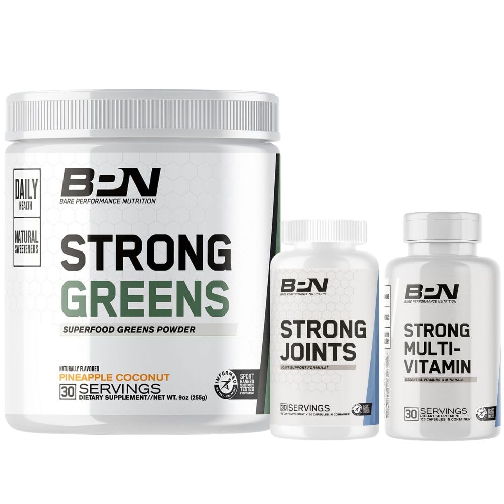 BARE PERFORMANCE NUTRITION BPN Strong Greens Superfood Powder Strong Joints & Strong Multi-Vitamin Bundle