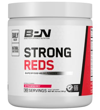 Strong Reds is our superfood reds powder that is packed with fruit extracts, antioxidants and digestive enzymes to support your immune system, improve natural energy, increase nutrient absorption and optimize cellular activity. Fill The Gaps In Your Diet With The Nutrition Your Body Needs Naturally Flavored Sweetened Strong Reds is naturally sweetened with stevia and monk fruit and doesn't contain any artificial flavors or sweeteners. Fruit Extracts Antioxidants Packed with antioxidants and powerful fruit extracts like Acai, Cherry Fruit, Pomegranate, Beet Juice, Blueberry, Cranberry, Papaya and Red Raspberry to boost cellular optimization and natural energy levels. Studied Dosages Strong Reds contains Spectra, the first scientifically validated formula of fruits, vegetables, and herbs shown to inhibit free radical production, optimize cellular metabolic activity, and increase nitric oxide levels within our bodies. Improved Digestion It is formulated with an effective digestive enzyme blend to promote optimal digestion and nutrient absorption. Fewer enzymes means poorer digestion, leading us to gain fewer nutrients and less energy from food.BARE PERFORMANCE NUTRITION: We are a team of driven leaders who are passionate about helping others reach their highest levels of fitness with training, nutrition, and supplementation. We live and train behind the motto, "GO ONE MORE". THIRD-PARTY TESTED FOR BANNED SUBSTANCES: Informed Sport certified products are tested for prohibited substances ensuring you feel comfortable consuming. Date printed on bottle is the Manufacturing Date. Expiration Date is two years after MFG date. NUTRIENT POWERHOUSE: Packed with vitamins, minerals, antioxidants and powerful fruit extracts like Acai, Cherry Fruit, Pomegranate, Beet Juice, Blueberry, Cranberry, Papaya and Red Raspberry to boost cellular optimization and natural energy levels. PRIMARY BENEFITS: Supports an increase in natural energy, a healthy immune system, and is packed with antioxidants. Contains added digestive enzymes for supported digestion the healthy breakdown of food. BPN STRONG REDS: Our superfood reds powder that is packed with fruit extracts, antioxidants and digestive enzymes to support your immune system, improve natural energy, increase nutrient absorption and optimize cellular activity.