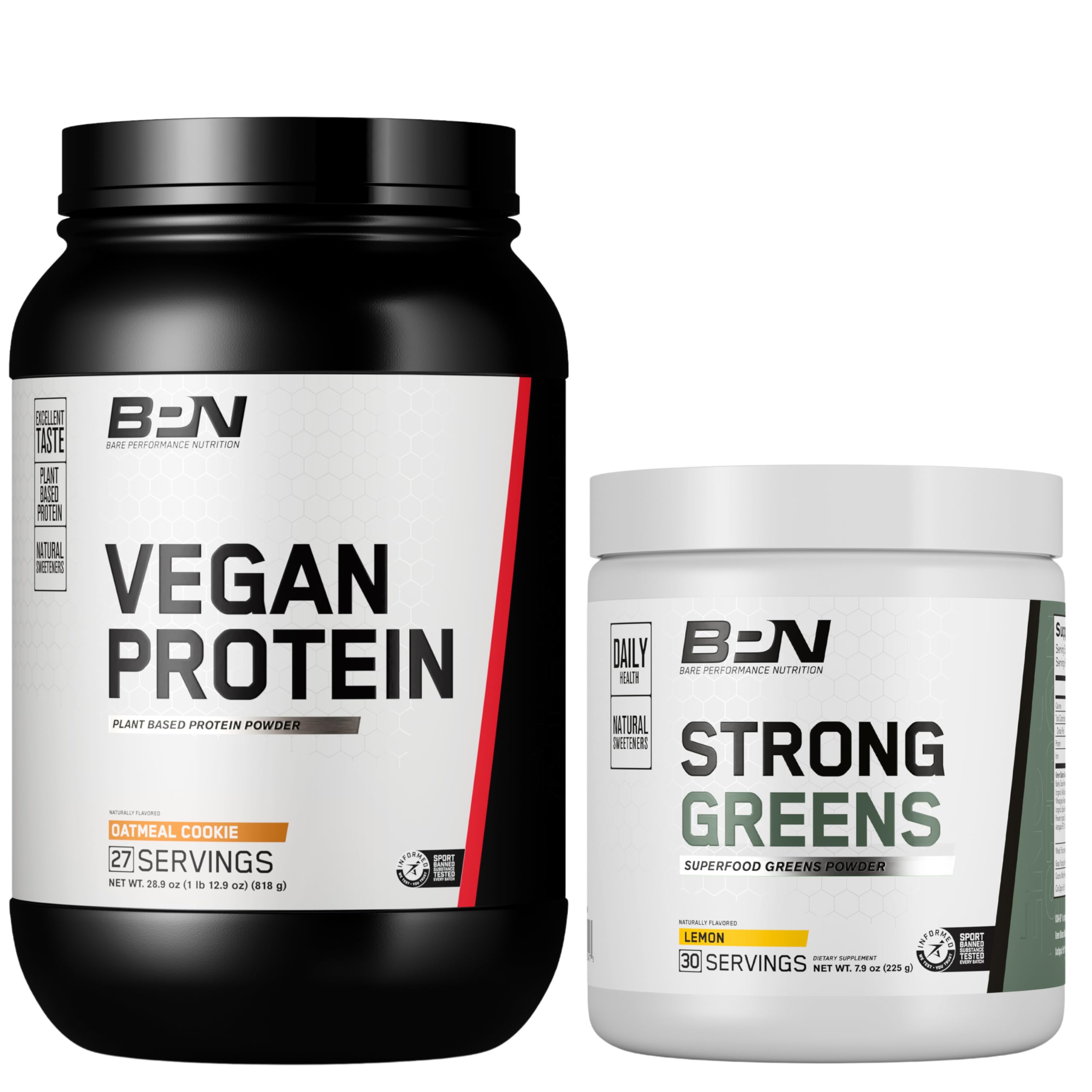 BARE PERFORMANCE NUTRITION BPN Vegan Oatmeal Cookie Protein + Strong Greens Lemon Bundle