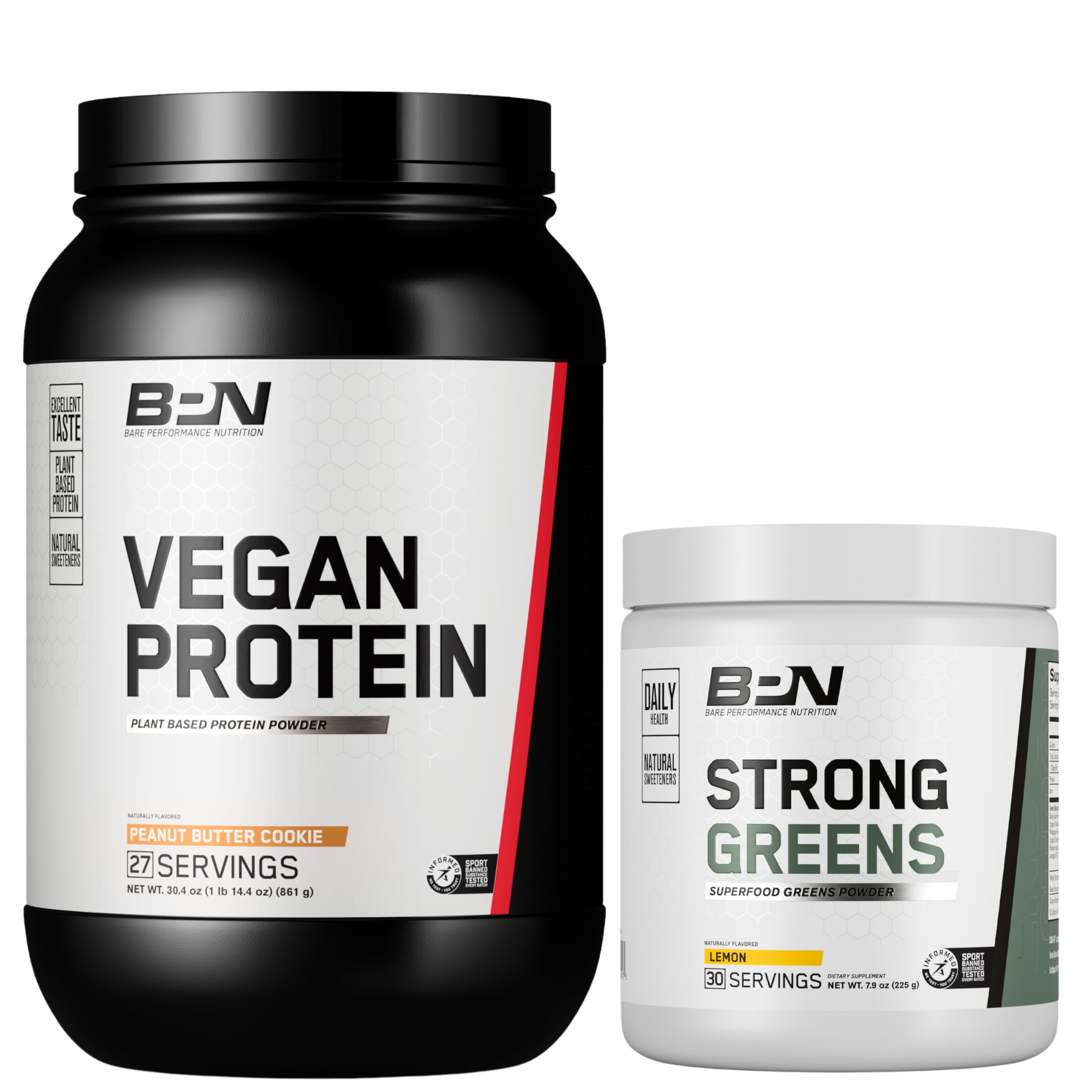 BARE PERFORMANCE NUTRITION BPN Vegan Peanut Butter Cookie Protein + Strong Greens Lemon Bundle