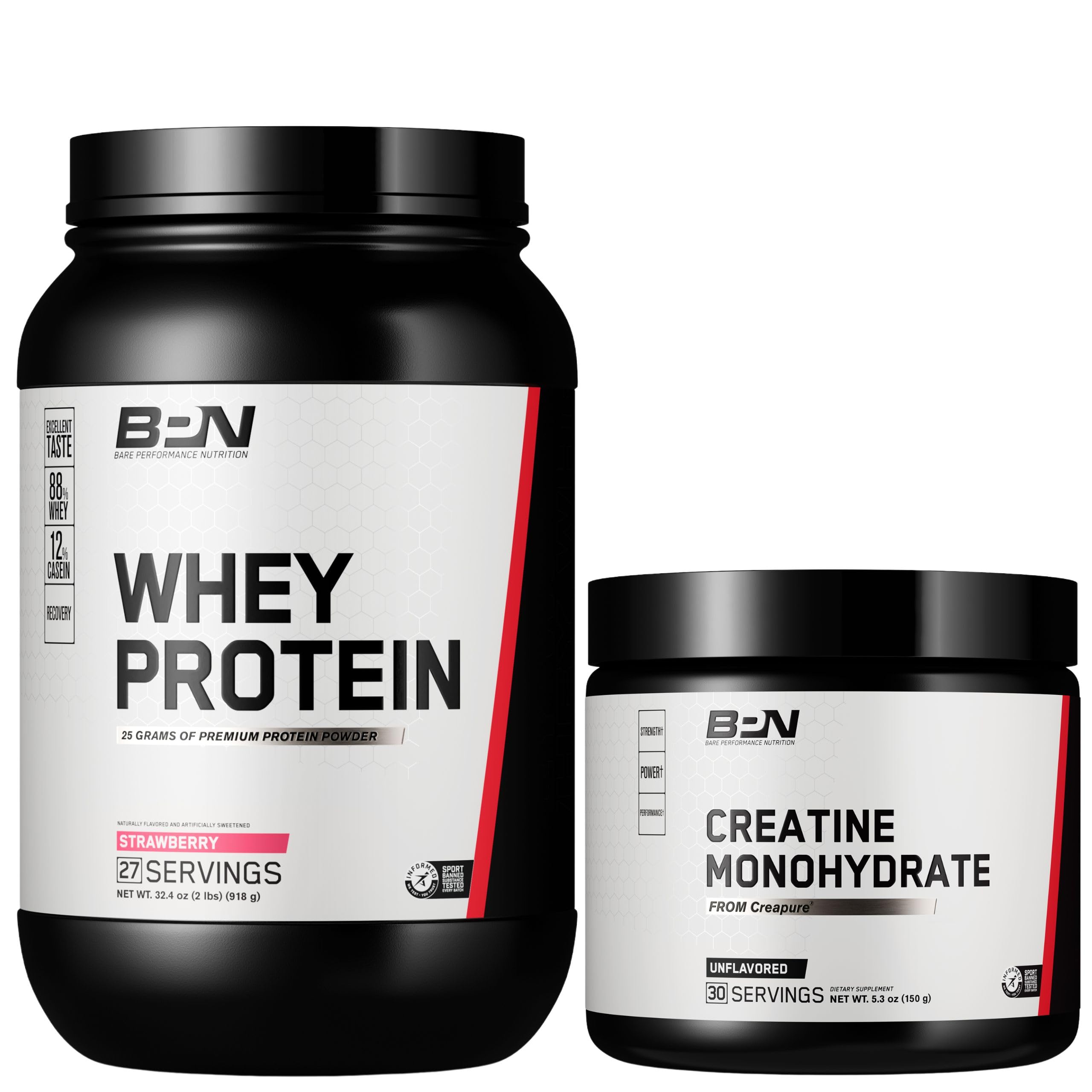 THIRD-PARTY TESTED FOR BANNED SUBSTANCES: Informed Sport certified products are tested for prohibited substances ensuring you feel comfortable consuming. Date printed on bottle is the Manufacturing Date. Expiration Date is two years after MFG date. PRIMARY BENEFITS: Creapure is the brand name for pure creatine monohydrate produced by AlzChem Trostberg GmbH in Germany. It supports regenerating the energy source used by the muscles, ATP, to increase endurance, strength and muscle mass. BPN CREATINE MONOHYDRATE: Sourced from Creapure, supports an increase in strength, power output and building lean muscle. Creapure is the most widely studied form of creatine and is proven to be safe and effective. Unflavored - 30 Servings. PRIMARY BENEFITS: Supports improved recovery and muscle protein synthesis necessary to build lean muscle. Amazing mixability, consistency and a variety of delicious flavors. Mix 1 serving (1 scoop) in 6-8 oz of cold water, milk or milk substitute. BPN WHEY PROTEIN POWDER: Our whey-casein protein blend helps improve your recovery and build muscle, with premium mixability and taste. Enjoy 25 grams of protein per serving in the most delicious flavors available. 27 Servings.