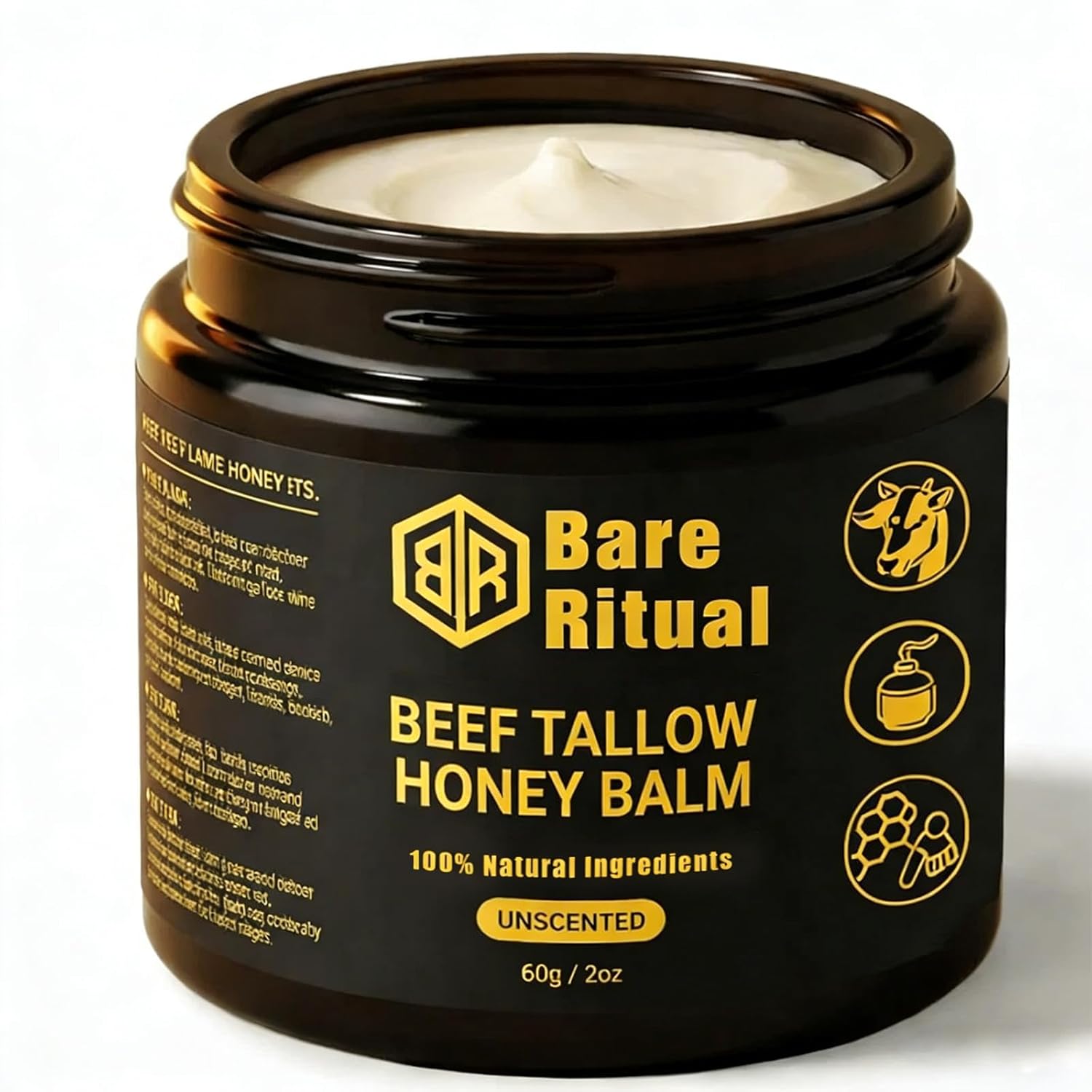 Bare Ritual Tallow Honey Balm,Deep Skin Care Beef Tallow Moisturizing Cream,Natural Whipped Moisturizing Skin Care Cream for All Skin Types.