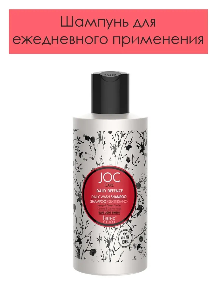 JOC CARE DAILY DEFENCE Wash Shampoo with Hemp and Green Caviar, 250 ml, pH 6.0 - ideal for all hair types, gently cleanses, strengthens, and protects against damage and the negative impact of external factors. Ideal for daily use. Blue Light Shield protects against damage caused by HEV radiation from electronic devices. The formula has high nutritional value due to the high content of fatty acids, omega, and vitamin E. Restores and smoothes the cuticle. Strengthens the fiber. Green caviar is rich in trace elements and polysaccharides. It has powerful protective and antioxidant properties. Gives softness, vitality, and natural radiance. JOC CARE products are 100% vegan. NO PARABENS, NO DYES, DERMATOLOGICALLY TESTED. Directions: Apply to damp hair, massage in and leave for a few minutes, then rinse. Barex Italiana is a renowned Italian brand of professional hair cosmetics. It offers a full range of hair care products. Barex Jok Care Daily Defense professional Italian hair care cosmetics offer a range of benefits, including cleansing, moisturizing and strengthening, restorative and smoothing, nourishing, and volumizing benefits. Barex Italiana's product range includes a wide range of products for hairdressers and beauty salons, including coloring and cutting, making Barex popular among stylists and professionals. Our professional brand offers a wide selection of products for shine, radiance, restoration and protection, nutrition and hydration, cleansing, and strengthening weakened split ends. Original - comes with an original certificate of conformity. You can always contact our professional technologists through the "Questions" section. in the product card for advice on product use and assistance in choosing a cosmetic product.