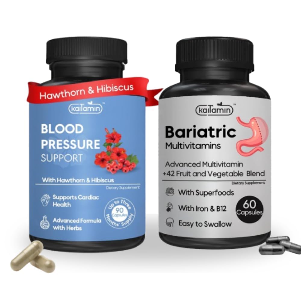 Convenient Daily Dosing: Easy-to-swallow capsules with a simple once-daily regimen—each product offers a 3-month or 2-month supply for sustained support. Boosts Energy Metabolism: Includes high-potency B12 and B6 to help maintain energy levels and support overall cardiovascular wellness. Herbal Blood Pressure Support: Features a blend of garlic, hawthorn berry, hibiscus, and olive leaf to support heart health and circulation. Hair, Skin, Nail Nourishment: Formulated with biotin, pantothenic acid, and inositol to help nourish and support the health of hair, skin, and nails post-surgery. Complete Post-Bariatric Support: Includes a comprehensive multivitamin with iron, 42 fruits and vegetables, and essential nutrients to support recovery after bariatric surgery.