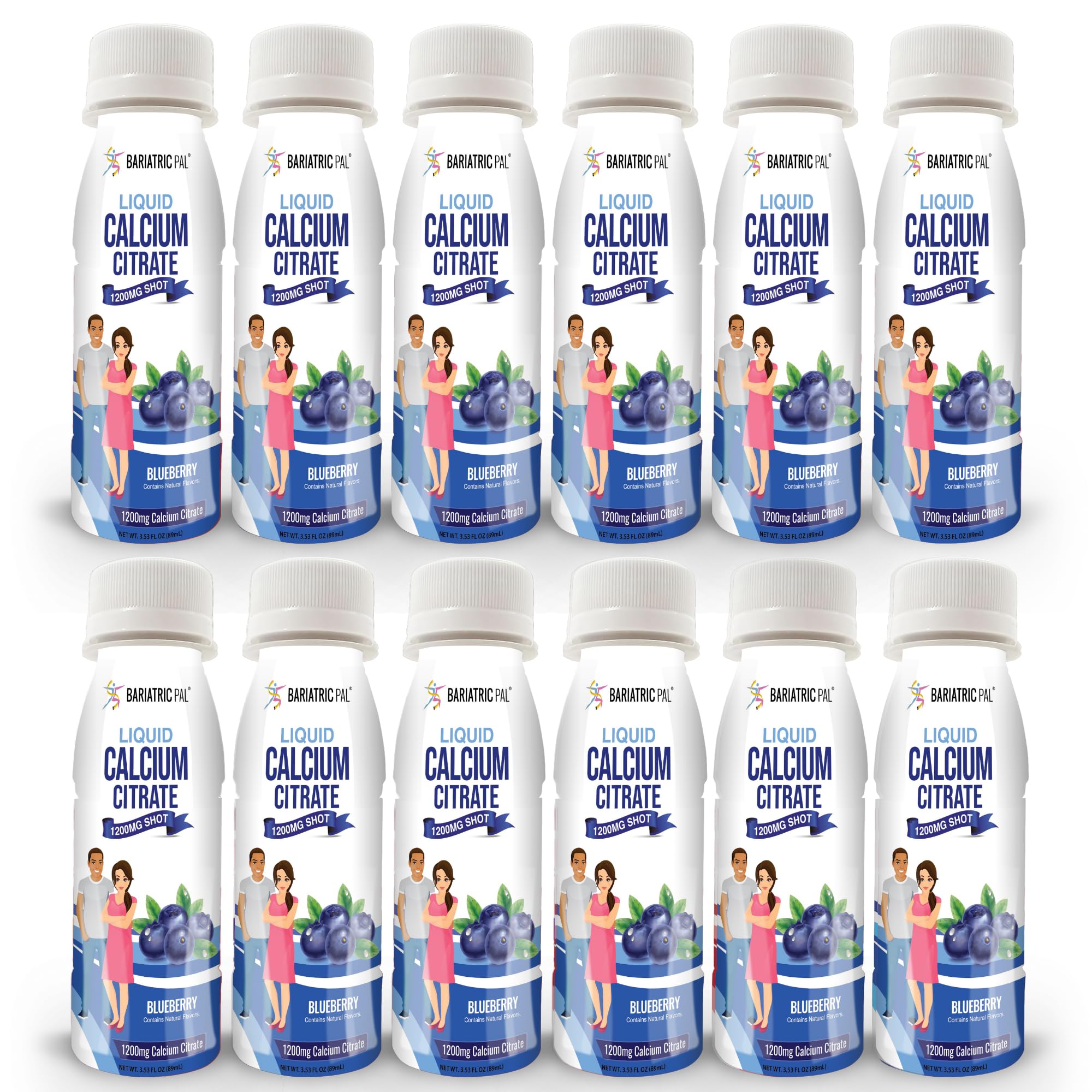 BariatricPal 1200mg Calcium Citrate Sugar-Free Liquid Shots - Blueberry (12-Pack)