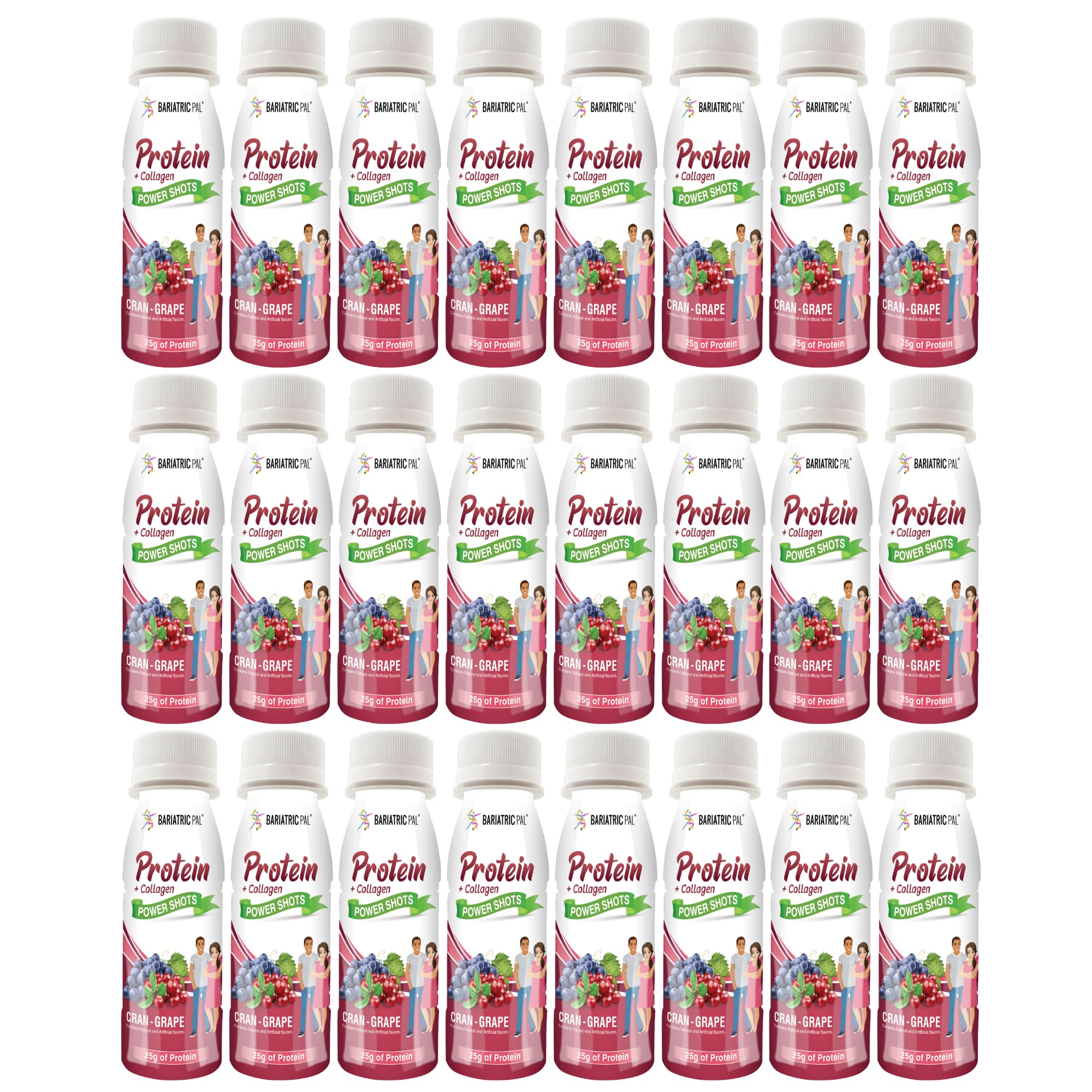 BariatricPal Ready-To-Drink 25g Whey Protein & Collagen Power Shots - Cran Grape (24 Bottles)