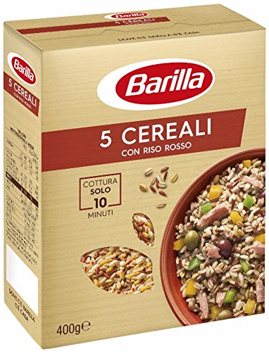 Barilla 5-Grain Mix with Red Rice, rich in protein and fiber – 6 x 400g (2400g). The ingredients in this grain mix are key components of the Mediterranean diet. Ideal for hot or cold dishes. Try it with tuna, peppers, and Tagasca olives. This grain mix is rich in fiber and protein. Cooking time: 10 minutes without pre-soaking. After draining, let it rest for 3-4 minutes with a drizzle of olive oil. Barilla: an Italian family business that has cultivated a passion for pasta since 1877. Our juices, pastas, and cereals are delicious, safe, and contribute to a balanced diet.