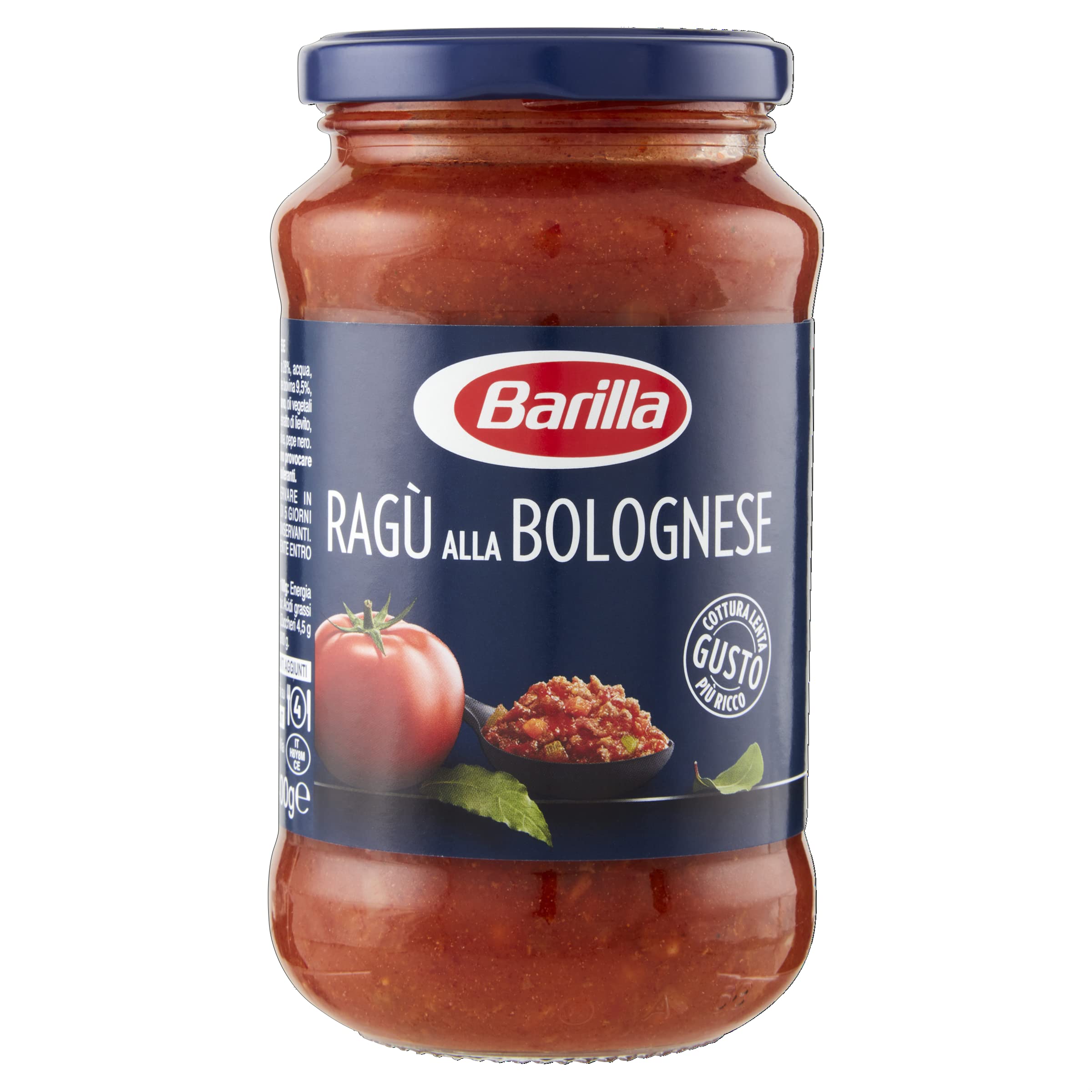 Barilla Bolognese Sauce, ready-to-use with Italian tomato and selected meat – gluten-free – 400g. Emiliane Egg Tagliatelle. To enhance the aroma and flavor of the ingredients, it is recommended to heat gently or in the microwave after opening the jar. Selected meat from a controlled supply chain, 100 Italian tomato. Ready to give your pasta the taste of good Italian cuisine. Barilla: an Italian family business that has cultivated a passion for pasta since 1877. Our juices, pastas, and cereals are delicious, safe, and contribute to a balanced diet. INGREDIENTS Vegetable oils (olive, sunflower), bay leaf 0.06 , sugar, yeast extract, salt, corn starch, celery, carrots, onion, pork 9.5 , beef 9.5 , tomato paste 16.5 , water, tomato pulp 28 , black pepper, sage extract INSTRUCTIONS Heat gently or in the microwave after opening the jar. Prepared with patience, care, and no added preservatives. See moreBarilla Sauce Ragoût Bolognaise, Sauce prête à la tomate italienne et viande sélectionnée sans gluten, 400g Sauce de sauce à la bolognaiseDESCRIPTION DU PRODUIT DESCRIPTION DU PRODUIT Barilla Sauce à la sauce bolognaise, prête à la tomate italienne et viande sélectionnée – sans gluten – 400 g. Les tagliatelles à l'œuf Emiliane. Pour exalter le parfum et la saveur des ingrédients, il est recommandé de le chauffer à feu lent ou au micro-ondes, après avoir ouvert le pot. Viande sélectionnée par filière contrôlée, tomate 100 italienne. Prêt à offrir à votre pâte le goût de la bonne cuisine italienne. Barilla : une entreprise italienne de famille qui cultive la passion pour les pâtes depuis 1877. Nos jus, pâtes et céréales sont savoureuses, sûres et contribuent à une alimentation équilibrée sur votre table. INGRÉDIENTS Huiles végétales (olive, tournesol) Laurier 0,06 sucre extrait de levure sel amidon de maïs céleri Carottes oignon viande porc 9,5 viande bovine 9,5 concentré de tomate 16,5 eau pulpe de tomate 28 poivre noir extrait de sauge MODE D'EMPLOI Chauffer à feu lent ou au micro-ondes après avoir ouvert le pot. Préparé avec patience, sagesse et sans conservateurs ajoutés. Voir plus