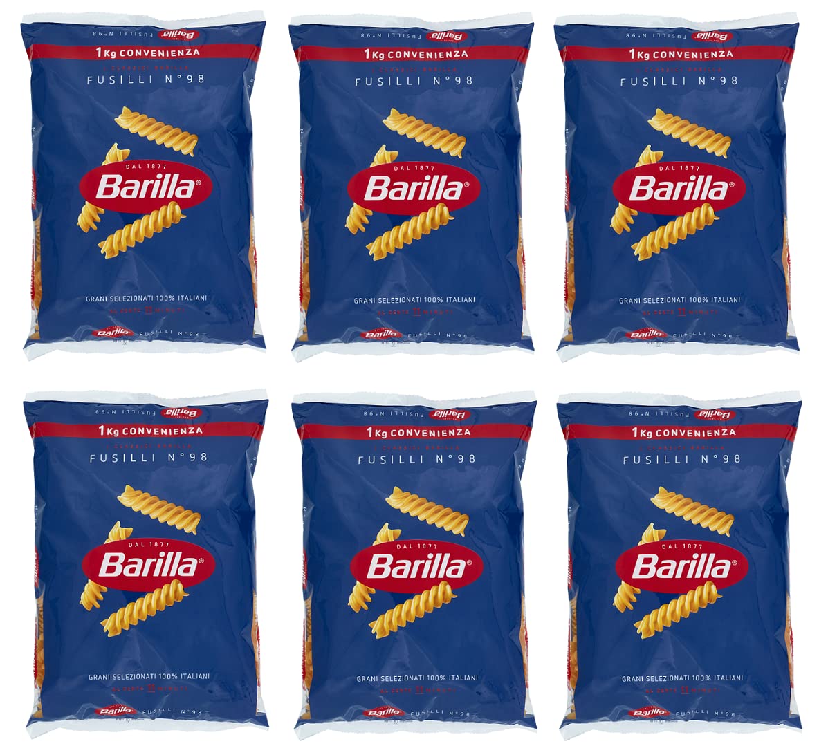 Barilla Barilla Fusilli N.98 Pack of 6 Italian pasta 100% Italian wheat 1 kg + Gourmet Italian Polpa 400 g