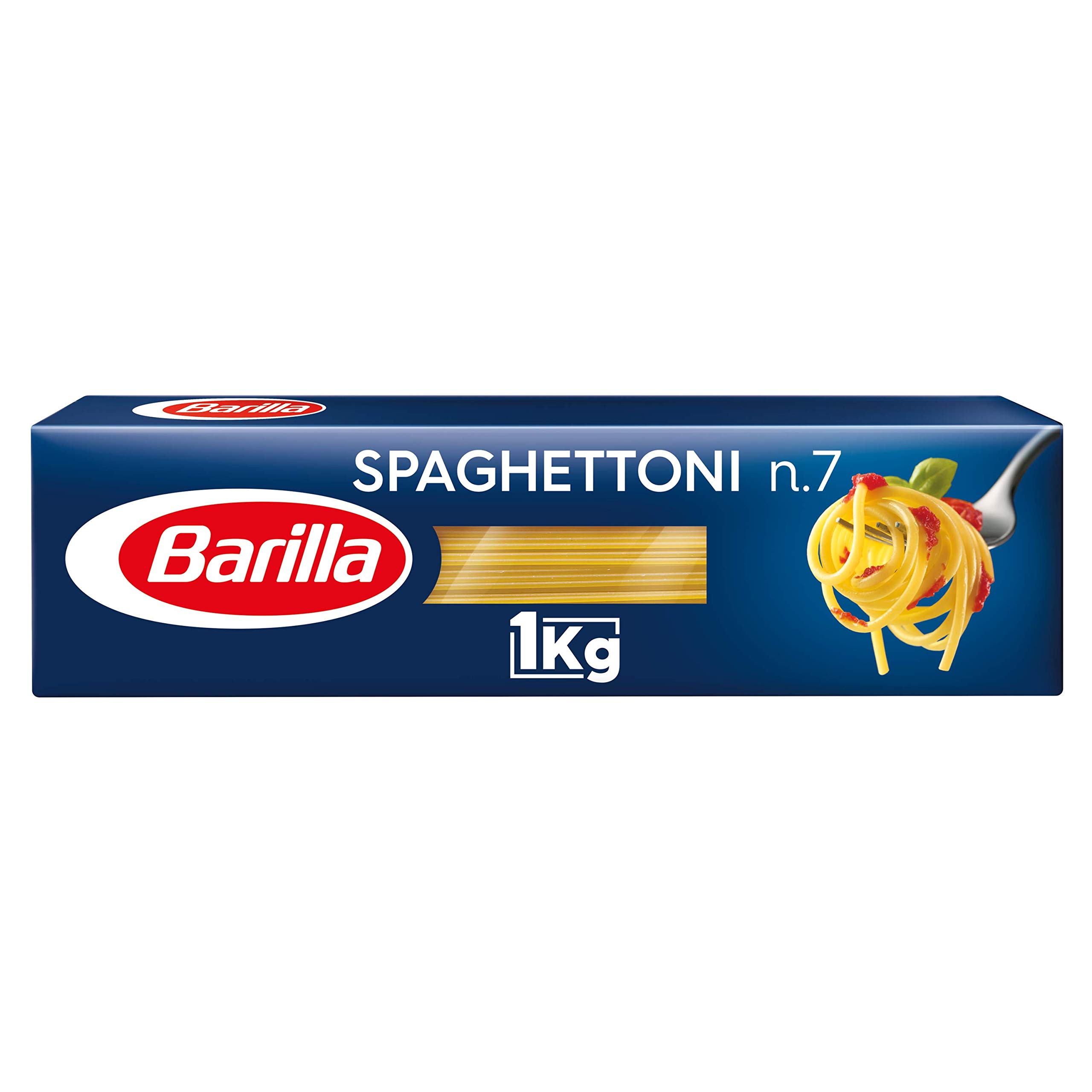 In the history of pasta, it's fascinating to follow the evolution of the thickness of long pasta shapes. Spaghettoni, for example, have a larger diameter and are perfect for allowing the full flavor of all types of sauces to express themselves, especially those made with fresh, generous ingredients. Barilla has taken the traditional shape of Spaghetti and, while maintaining its legendary attention to the selection of its durum wheat, has created a thicker product. This results in the richer taste of Spaghettoni, always cooked "al dente," which pairs particularly well with the wide variety of recipes offered by Italian cuisine. INGREDIENTS PASTA - Ingredients: durum wheat semolina, water. May contain traces of egg if produced in the establishment indicated with the letter (A). INSTRUCTIONS FOR USE The thick shape of Barilla Spaghettoni makes them perfect for enhancing light sauces, such as fish sauces, or spicy sauces with a pronounced flavor, like garlic and chili. To best appreciate the texture of Spaghettoni, Barilla recommends a refined sauce with a creamy leek and prawn velouté: a pasta dish with a seafood flavor softened by the delicate taste of leek. But to experience the very best of authentic Italian pasta and the flavors and colors you love, try a simple sauce with tomatoes and basil (which you'll find in the Barilla Sauces range). SAFETY WARNING Store in a cool, dry place. See moreBarilla Pâtes Spaghettoni 1 kgDESCRIPTION DU PRODUIT DESCRIPTION DU PRODUIT Dans l'histoire des pâtes, il est passionnant de suivre l'évolution de l'épaisseur des modèles de pâtes longues. Les Spaghettoni, par exemple, ont un diamètre plus important et sont parfaits pour faire s'exprimer pleinement le goût de tous les types de sauces, notamment à base d'ingrédients frais et généreux. Barilla a repris la forme traditionnelle des Spaghetti et, tout en conservant son attention légendaire pour le choix de ses blés durs, a créé un produit plus épais. Ainsi, le goût plus riche des Spaghettoni, toujours "al dente", s'associe particulièrement bien à la grande variété de recettes proposée par la cuisine italienne. INGRÉDIENTS PÂTES ALIMENTAIRES - Ingrédients : semoule de blé dur, eau. Peut contenir des traces d'oeufs si produit dans l'établissement indiqué avec la lettre (A). MODE D'EMPLOI La forme épaisse des Spaghettoni Barilla les rend parfaits pour exalter les sauces légères, par exemple à base de poisson, ou les sauces piquantes au goût marqué, avec ail et piment. Pour profiter au mieux de la consistance des Spaghettoni, Barilla vous conseille une sauce raffinée au velouté de poireaux et aux crevettes bouquet: un plat de pâtes au goût marin que radoucit la délicatesse du poireau. Mais pour goûter le meilleur des véritables pâtes italiennes et des saveurs et couleurs que vous aimez, essayez une simple sauce avec des tomates et du basilic (que vous trouverez dans la gamme des Sauces Barilla). AVERTISSEMENT DE SÉCURITÉ Conserver dans un endroit frais et sec. Voir plus