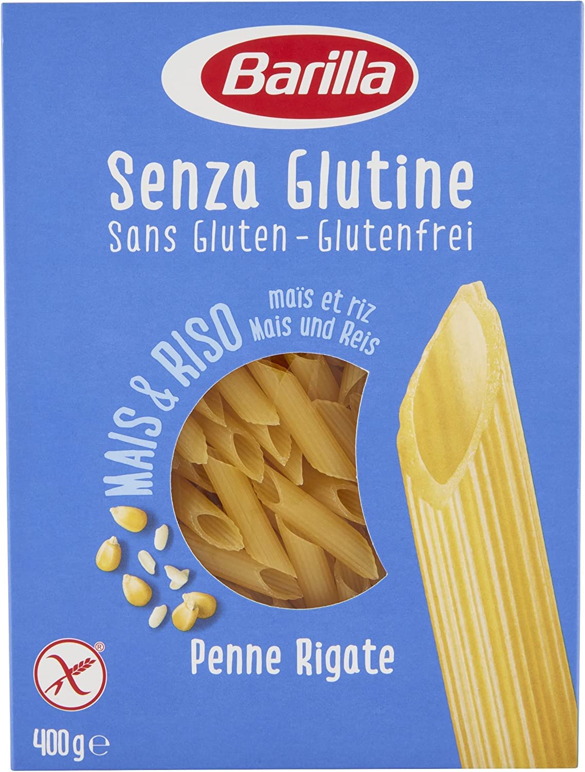 All the pleasure of Barilla pasta, gluten-free. Thanks to the exclusive combination of white corn, yellow corn, and rice, Barilla creates truly gluten-free pasta with a balanced taste and always al dente. Ingredients: white corn flour (65 ), yellow corn flour (29.5 ), rice flour (5 ), water, emulsifier: mono- and diglycerides of fatty acids of vegetable origin. Hypoallergenic: does not contain any declared allergens. Average nutritional values as prepared per 100g: Energy 1502 kJ, Energy 359 kcal Fat 1.8g, of which saturates 0.3g Carbohydrate 78.7g, of which sugars 1.2g Fiber 1.1g Protein 6.5g Salt 0.03g. - Preparation and storage. Note: Keep refrigerated and dry. Product Details: Brand: Barilla Country of Origin: Italy Contact Name: Barilla G. e R. Fratelli - Società par Azioni Contact Address: Via Mantova 166, Parma - Italy. INGREDIENTS Ingredients: Rice, cornBarilla Penne rigate Lot de 5 pâtes sans gluten 400 g senza glutineDESCRIPTION DU PRODUIT DESCRIPTION DU PRODUIT Tout le plaisir des pâtes Barilla sans gluten. Grâce à la combinaison exclusive de maïs blanc, de maïs jaune et de riz, Barilla crée des pâtes vraiment sans gluten, avec un goût équilibré et toujours al dente. Ingrédients : farine de maïs blanche (65 ), farine de maïs jaune (29,5 ), farine de riz (5 ), eau, émulsifiant : mono-et diglycérides d'acides gras alimentaires d'origine végétale. Hypoallergénique : ne contient pas d'allergènes à déclaration. Valeurs nutritionnelles moyennes non préparées pour 100 g d'énergie 1502 kJ Énergie 359 kcal Lipides 1,8 g de graisses dont acides gras saturés 0,3 g Glucides 78,7 g de glucides, dont sucre 1,2 g de fibres, 1,1 g de protéines 6,5 g de sel 003 g de sel - Préparation et conservation. Remarque : froid et Conserver au sec Détails de l'article Marque : Barilla Pays d'origine : Italie Nom de contact : Barilla G. e R. Fratelli - Società par Azioni Adresse de contact : Via Mantova 166, Parme - Italy. INGRÉDIENTS Ingrédients Ries, maïs