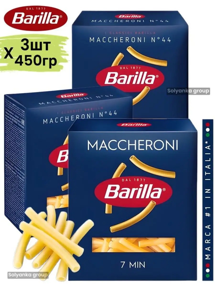 Barilla Макароны Маккерони (44), 3шт x 450г