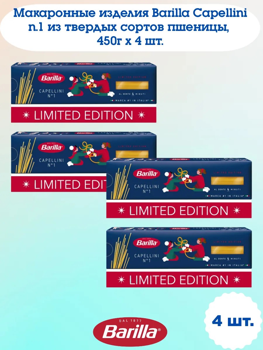 | Комплектация | Макаронные изделия Capellini n.1, 450г х 4 шт. |