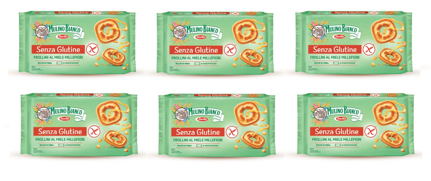 Short-life gluten-free biscuits with the sweetness of millefiori honey. A simple recipe, prepared only with naturally gluten-free ingredients for a delicious and light bread. Ingredients: potato starch, starch, corn flour, sugar, sunflower oil, honey 2.9 , fresh eggs, flavorings (milk), skimmed milk, leavening (ammonium bicarbonate, sodium carbonate), milk proteins, salt, emulsifier: sunflower lecithin. May contain traces of soy. The highlighted ingredients may cause reactions in people with allergies or intolerances. Free from: gluten, palm oil, coloring additives, preservatives, hardened fats, GMO ingredients. Per 100g: energy 1959 kJ - 459 kcal - Fat 16g of which: saturates 1.0g, carbon dioxide 73.4g of which sugars 20.0g. ASERN 6, 1 g of protein, 2.3 g of salt, 0.420 g. INGREDIENTS Potato starch, corn starch, corn flour, sugar, sunflower oil, honey 2.9 , fresh eggs, flavorings (milk), skimmed milk powder, leavening (ammonium bicarbonate, sodium carbonate), milk proteins, salt, emulsifier: sunflower lecithin. May contain traces of soy.Barilla Mulino Bianco 6 x Frollini al Miele Millefiori Miel de fleurs 250 g sans glutenDESCRIPTION DU PRODUIT DESCRIPTION DU PRODUIT Biscuits sans gluten à courte durée avec la douceur du miel millefiori. Une recette simple, prépare uniquement avec des ingrédients issus de matières premières naturellement sans gluten pour un bread délicieux et léger. Ingrédients : amidon de pomme de terre, amidon, farine de maïs, sucre, huile de tournesol, miel 2,9 , œufs frais, arômes (lait), lait écrémé, levure (bicarbonate d'ammonium, carbonate de sodium), protéines de lait, sel, émulsifiant : lecithine de tournesol. Il peut contenir des traces de soja. Les ingrédients mis en valeur peuvent provoquer des réactions chez les personnes allergiques ou intolérantes. Sans : gluten, huile de palme, additifs colorants, conservateurs, graisses durcies, ingrédients OGM pour 100 g : énergie 1959 kJ - 459 kcal - Matières grasses 16 g dont : acides gras saturés 1,0 g , hydrodate de carbone 73,4 g dont sucre 20,0 g. ASERN 6, 1 g de protéine 2,3 g de sel 0,420 g. INGRÉDIENTS Amidon de pomme de terre, amidon, farine de maïs, sucre, huile de tournesol, miel 2,9 , œufs frais, arômes (lait), poudre de lait écrémé, levure (bicarbonate d'ammonium, carbonate de sodium), protéines de lait, sel, émulsifiant : lecithine de tournesol. Il peut contenir des traces de soja.